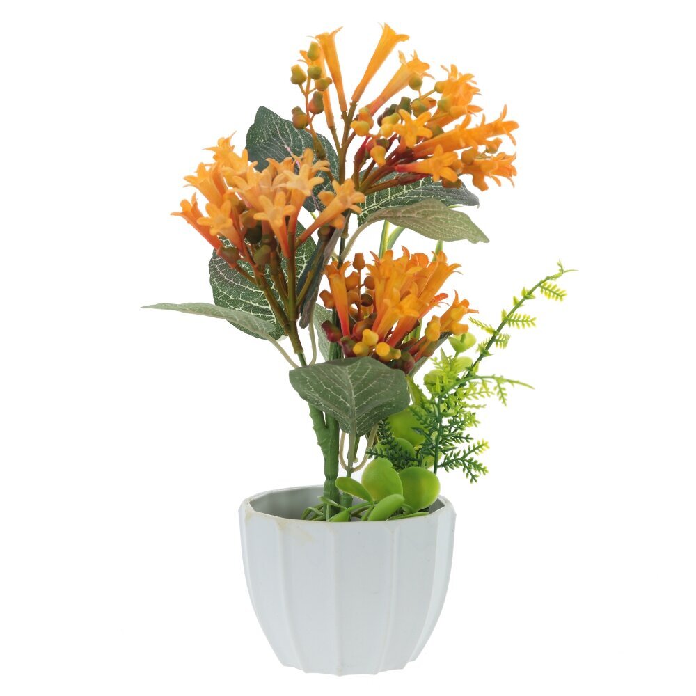 Цветочная искусственная композиция представляет собой изысканное украшение для интерьера. Изготовлена из полимерных материалов, что обеспечивает стойкость и долговечность цветов. Кашпо серого цвета идеально гармонирует с выбранными оттенками цветов, придавая композиции стильный вид. Размеры позволяют легко разместить ее в любом помещении. Создайте атмосферу уюта и красоты с этой элегантной цветочной композицией. Выберите стиль и гармонию для вашего дома с этим прекрасным аксессуаром. Представлено в трех вариантах.
