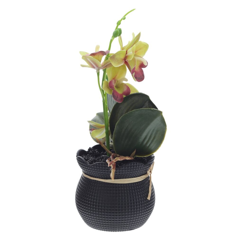 Цветочная композиция "Орхидея" — изысканное декоративное изделие, выполненное с использованием различных материалов. Основой служит кашпо черного цвета, которое придаёт работе утончённость и гармонично сочетается с нежной цветовой гаммой цветков. Ветви и стебли изготовлены из полимерных материалов, что обеспечивает прочность и реалистичный вид. Лепестки цветов выполнены из текстильных материалов, за счёт чего цветок выглядит естественно и утончённо, а бутоны добавляют текстурности и объёма. Для оформления также использованы натуральные материалы — камушки, которыми украшено основание растения, создавая впечатление настоящей посадки. Такая композиция прекрасно подойдёт для украшения интерьера, придавая пространству уют и природную свежесть, а также станет отличным подарком, символизирующим чистоту и красоту природы.
