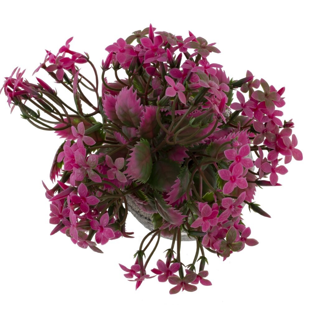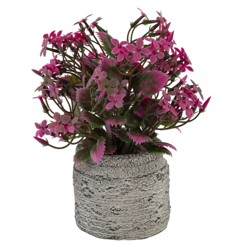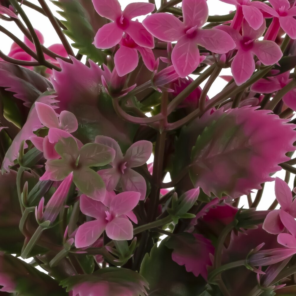 Искусственная цветочная композиция в фактурном серо-каменистом кашпо. Пышный куст из тонких веточек украшен множеством миниатюрных пятилистных цветков насыщенного розово-малинового оттенка. Листья двуцветные: глубокий зелёный с розовыми, чуть зубчатыми краями, что создаёт живой контраст и объём. Благодаря продуманной форме букет выглядит свежим и аккуратным круглый год, не требует полива и особого ухода. Композиция подойдёт для рабочего стола, полки, прикроватной тумбы или ванной комнаты, легко впишется в современный и классический интерьер, добавляя яркий акцент и ощущение уюта без хлопот.