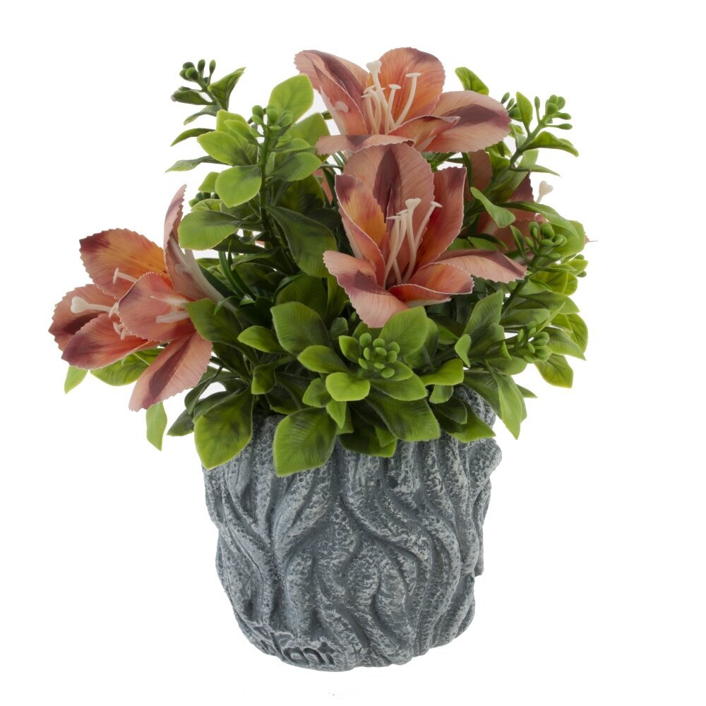 Искусственная цветочная композиция в выразительном кашпо из магнезии станет акцентом любого интерьера. Серое “каменное” основание выполнено в виде спокойного лица, создающего ощущение гармонии и умиротворения. Внутри — густая зелень разных оттенков и фактур, дополненная нежными соцветиями. Растительные элементы изготовлены из качественных полимерных материалов: они держат форму, не требуют полива и особого ухода, легко очищаются от пыли. Композиция уместна в гостиной, спальне, кабинете или зоне ресепшн, красиво смотрится на полке, подоконнике или журнальном столике. Отличный подарок для тех, кто любит атмосферный декор без хлопот.