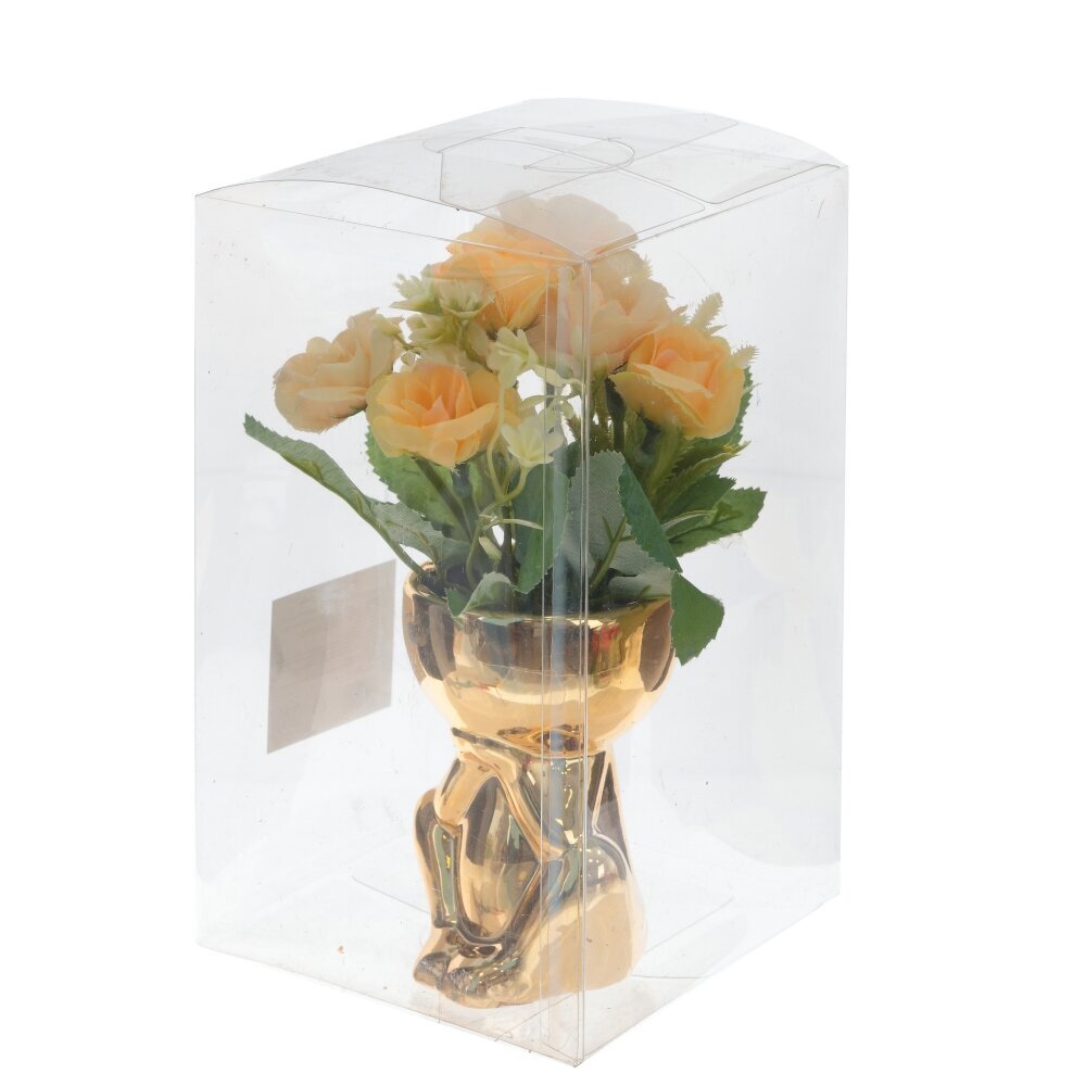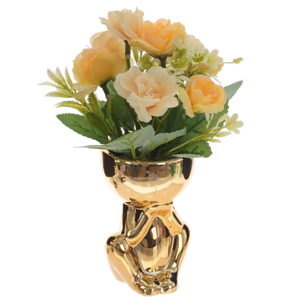 Цветочная композиция из искусственных роз в кашпо формы человечка золотого цвета — это элегантное и изысканное украшение, которое приносит в дом тепло и уют. Лепестки роз изготовлены из качественного искусственного материала, имитирующего свежесть и шелковистость настоящих цветов. Цветочная композиция — это не только изящное украшение, но и отличный подарок для близких и друзей. Она не требует особого ухода, и ее красота будет радовать долгое время, напоминая о любви и доброте. Представлено в четырех вариантах.