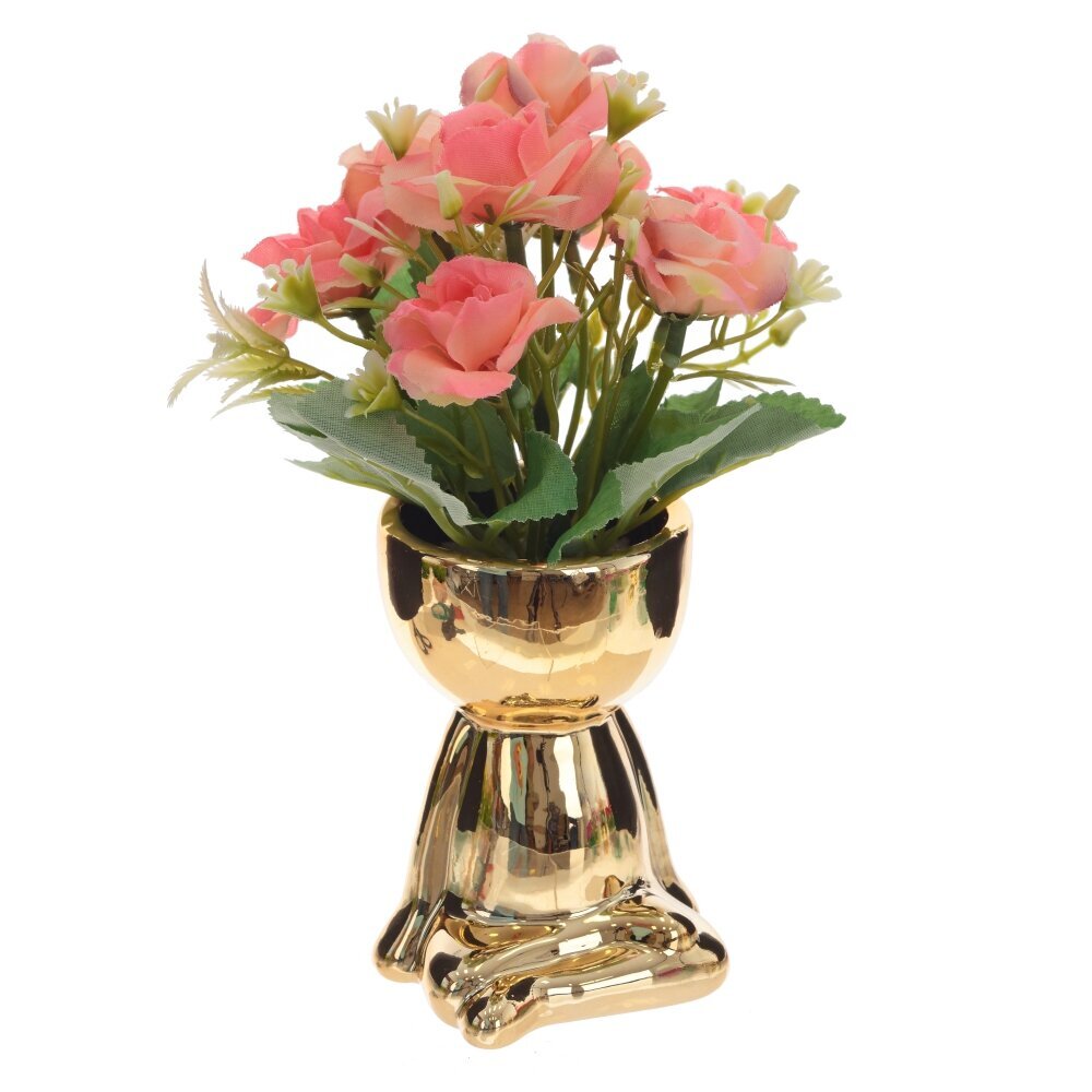 Цветочная композиция из искусственных роз в кашпо формы человечка золотого цвета — это элегантное и изысканное украшение, которое приносит в дом тепло и уют. Лепестки роз изготовлены из качественного искусственного материала, имитирующего свежесть и шелковистость настоящих цветов. Цветочная композиция — это не только изящное украшение, но и отличный подарок для близких и друзей. Она не требует особого ухода, и ее красота будет радовать долгое время, напоминая о любви и доброте. Представлено в четырех вариантах.