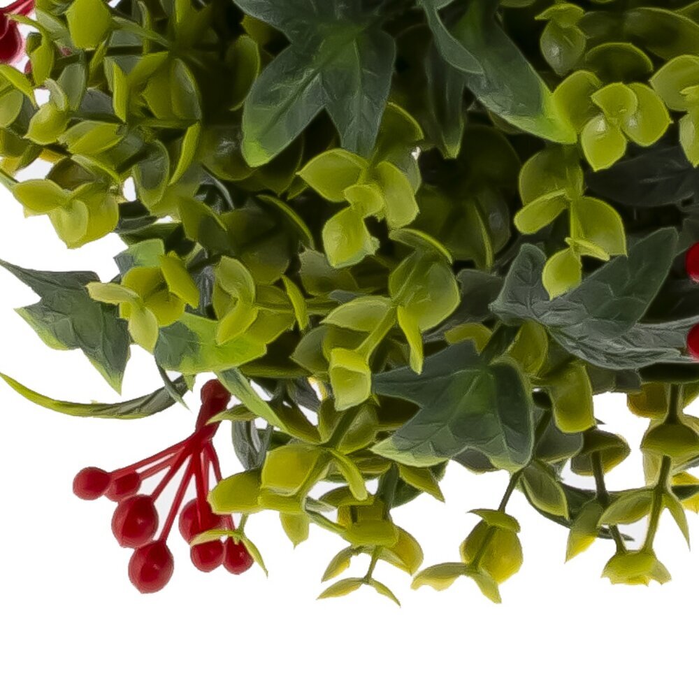 Цветочная композиция "Шар Самшит" выполнена из полимерных материалов, благодаря чему она выглядит максимально натурально и долго сохраняет привлекательный вид. Яркая насыщенная зелень самшита прекрасно имитирует природную листву, а небольшие фиолетовые цветки, аккуратно распределённые среди листвы, придают изделию живой и ухоженный вид. Такой шар станет отличным украшением интерьера, добавит свежести и уюта как жилому пространству, так и офису. Не требует полива и специального ухода, что особенно удобно для занятых людей. Лёгкая, прочная конструкция легко вписывается в различные стили декора.