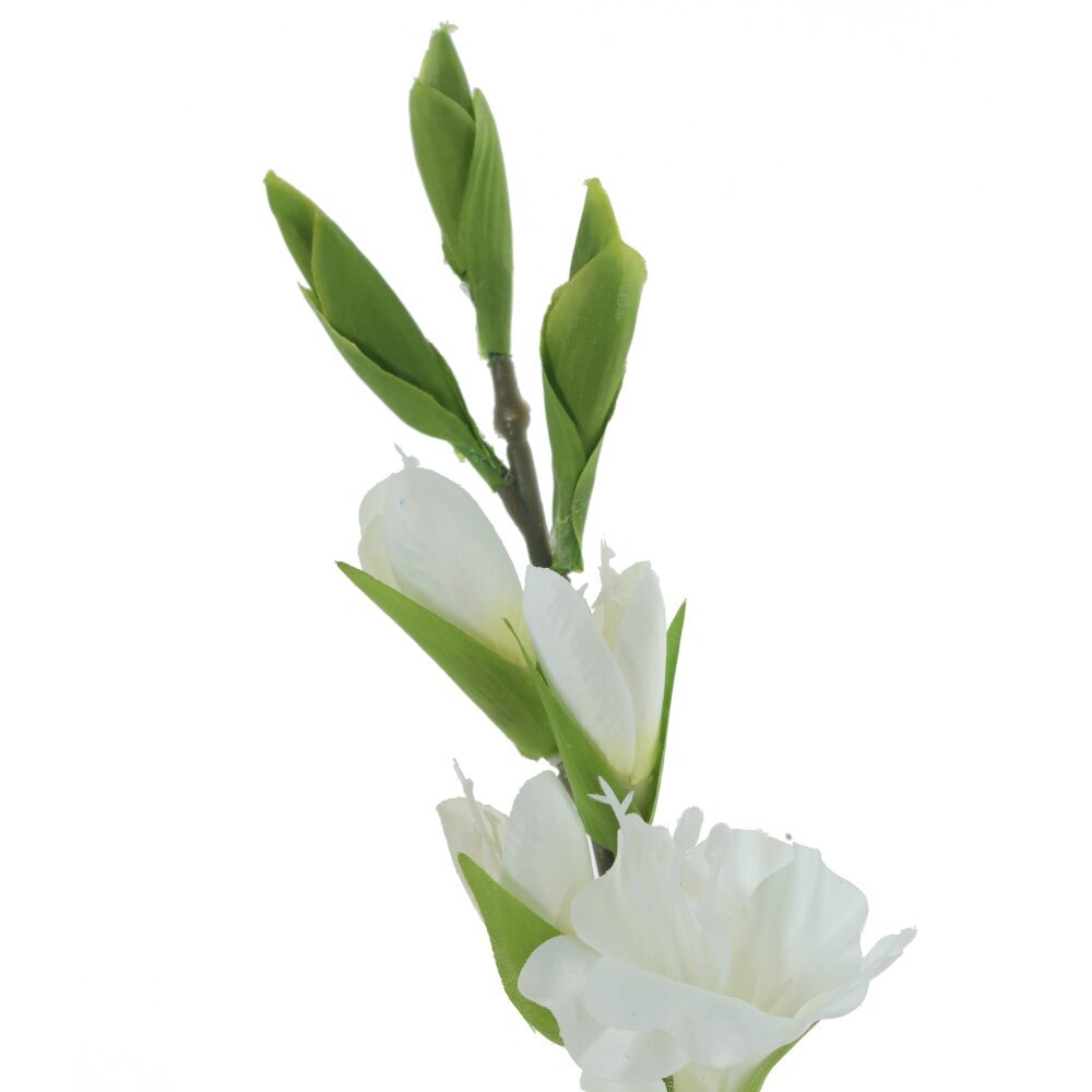 Искусственный цветок "Гладиолус" — это элегантное украшение интерьера, которое отлично дополнит любую композицию и придаст вашему дому свежесть и утончённость. Цветок выполнен из качественных полимерных и текстильных материалов, что делает его внешний вид максимально приближённым к натуральному растению. Прочный металлический стебель позволяет легко формировать нужную форму и высоту, обеспечивая устойчивость букета в любой вазе. Белые лепестки выглядят очень реалистично и не требуют ухода — искусственный гладиолус не вянет, не выцветает и долгие годы сохраняет свою привлекательность. Этот цветок идеально подойдёт для декорирования дома, офиса, кафе или как часть праздничной композиции. Прекрасный выбор для тех, кто ценит красоту и практичность!