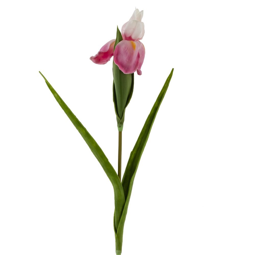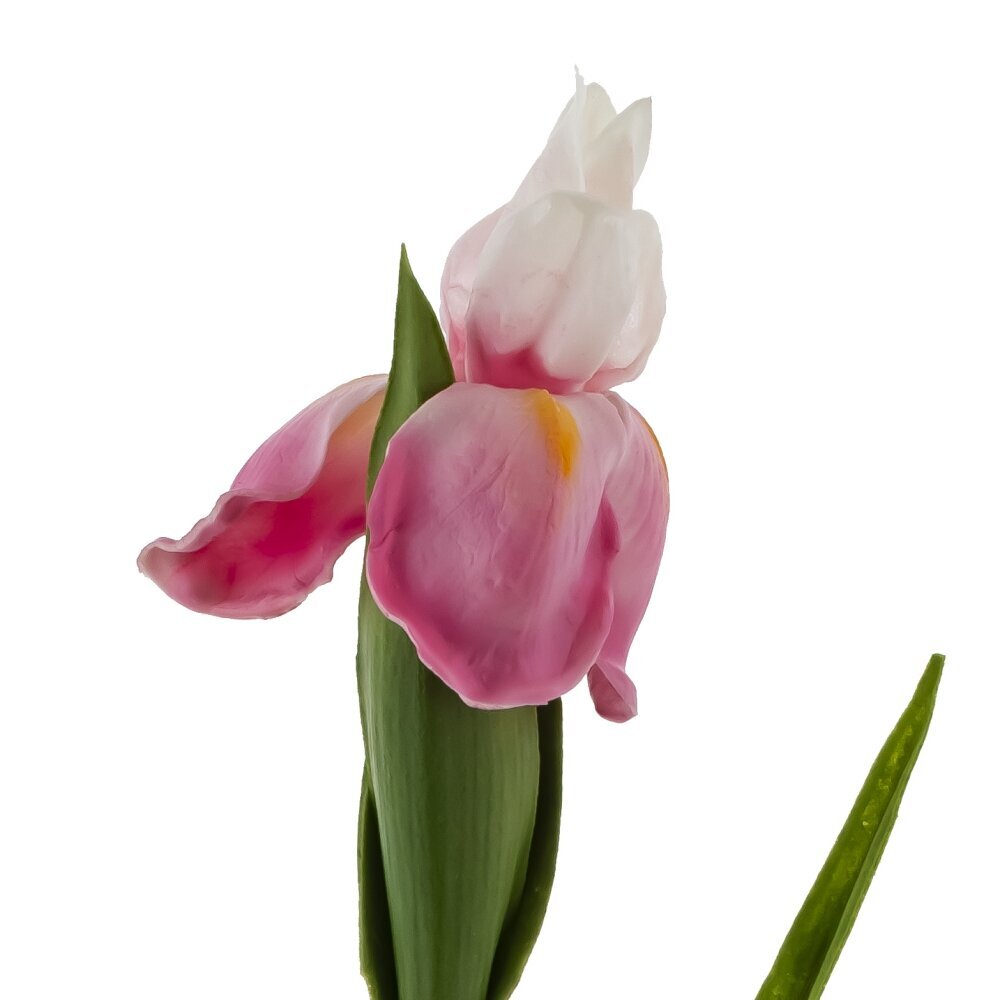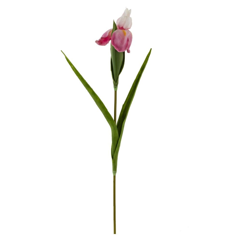 Искусственный цветок «Ирис» — изящный стебель с одной полностью распустившейся коронкой и двумя бутонами разной степени раскрытия. Плавный градиент розового цвета с мягкими волнистыми краями лепестков и тонкими прожилками создаёт реалистичный эффект живого цветка. Узкие зелёные листья и аккуратные прилистники дополняют композицию. Лёгкий, но устойчивый стебель можно гнуть и подрезать для нужной высоты. Подходит для одиночной вазы, составления букетов и декоративных композиций, не требует ухода и долго сохраняет свежий вид в интерьере.