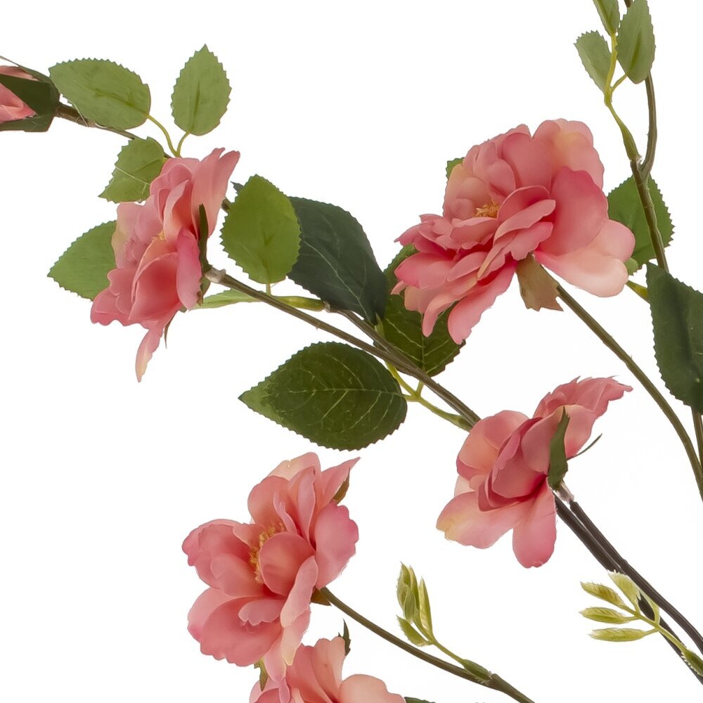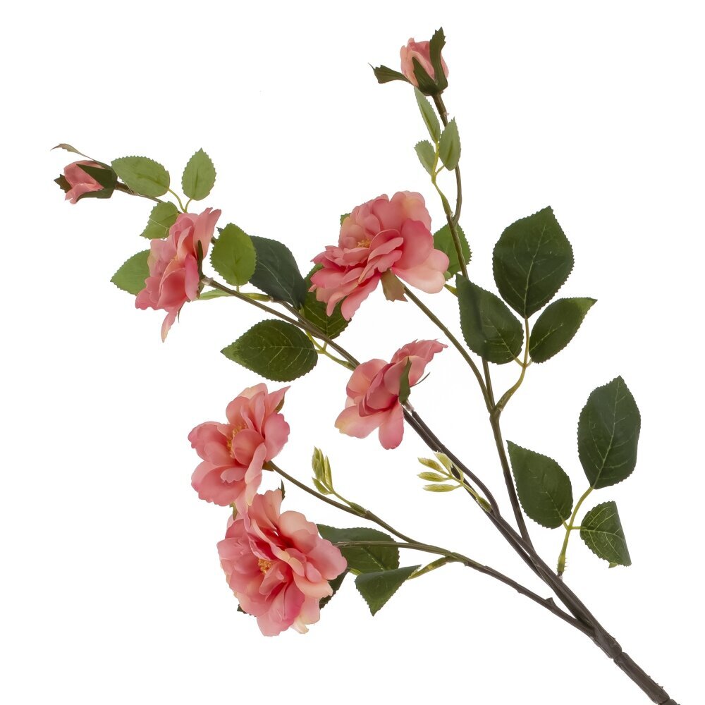 Искусственный цветок «Роза» — изящная ветка с несколькими распустившимися цветками и парой аккуратных бутонов на длинном темном стебле. Лепестки выглядят мягкими и многослойными, листва матово—зелёная с проработанными прожилками, создающими естественный вид. Композиция гармонично впишется в любой интерьер: от минимализма до классики, подойдёт для настольных и напольных ваз, свадебного и праздничного декора, витрин. Не требует ухода, не осыпается и надолго сохраняет форму. Гибкий стебель позволяет легко моделировать направление и собирать композиции с другими растениями. Отличное решение, когда нужна свежесть и элегантность без хлопот.
