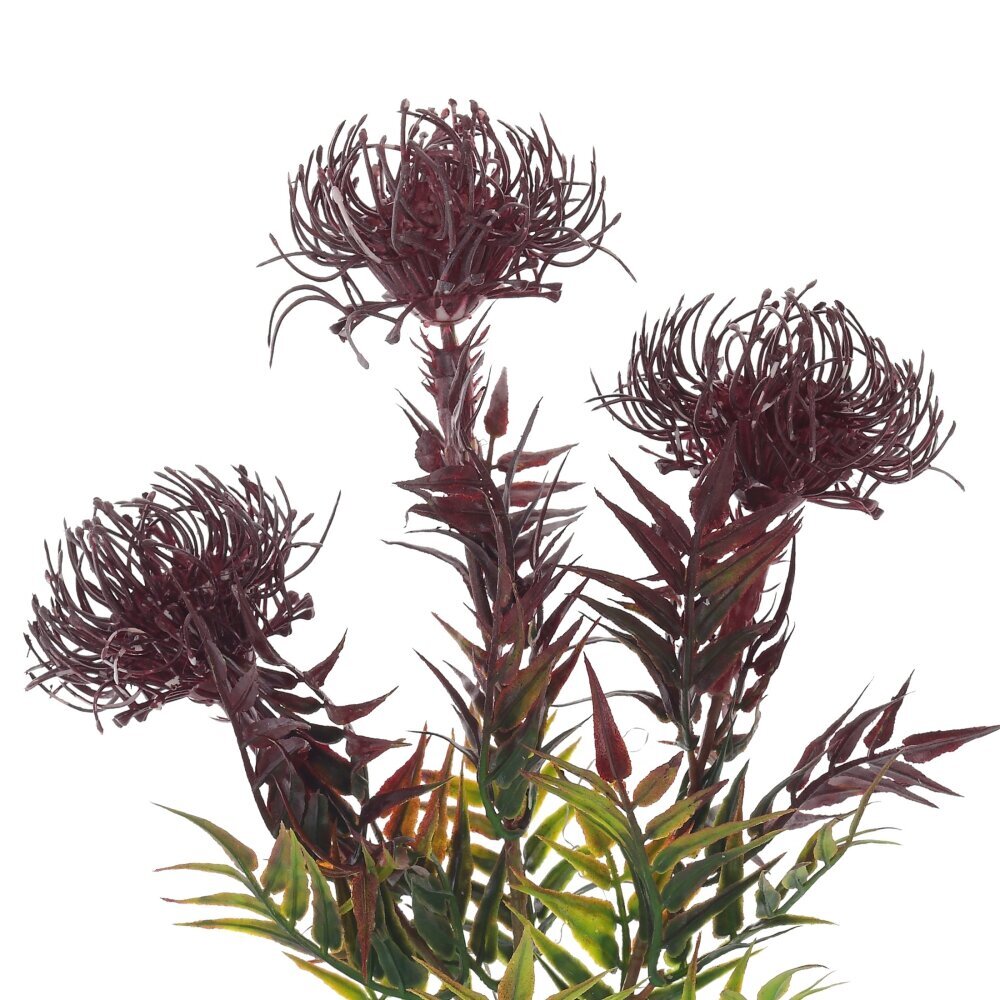 Цветок искусственный изготовлен из полимерных материалов. Все листья имеют правильную форму, соцветия плотно сидят на стебле. Цветок выглядит натурально и будет естественно смотреться в интерьере.