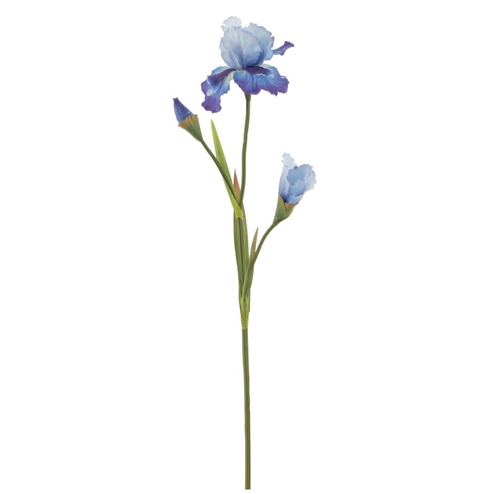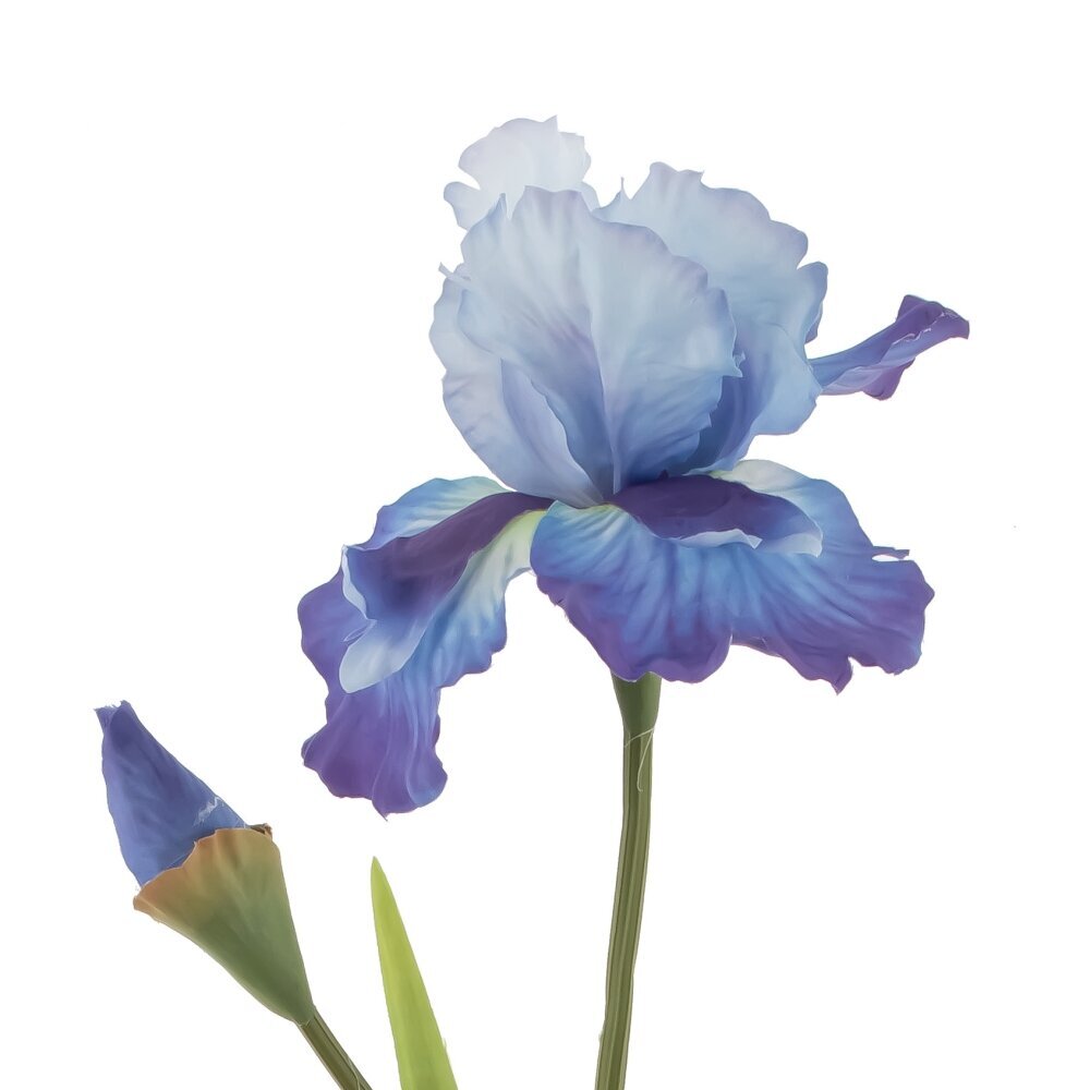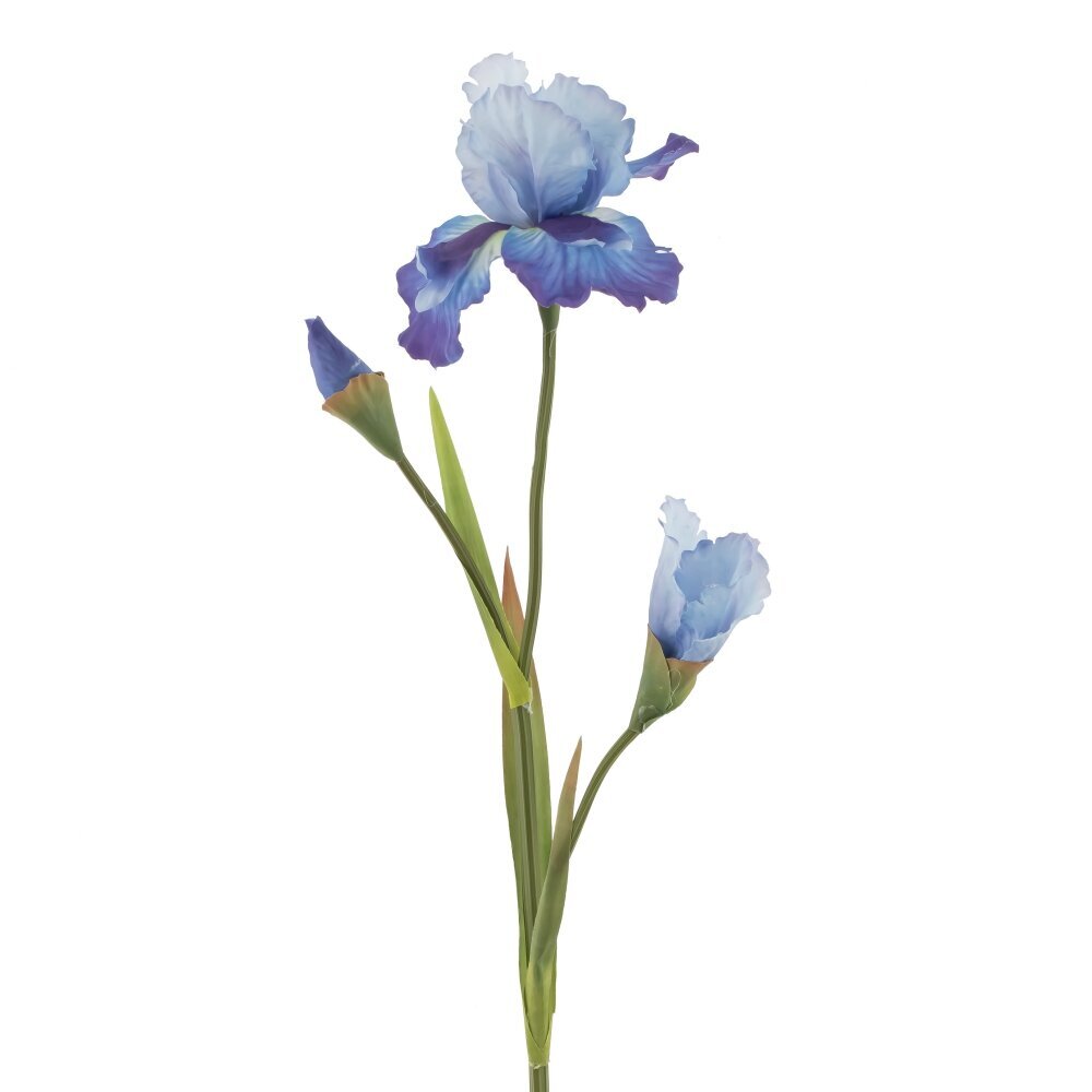 Искусственный цветок «Ирис» — изящный стебель с одной полностью распустившейся коронкой и двумя бутонами разной степени раскрытия. Плавный градиент от небесно—голубого к лавандовому с мягкими волнистыми краями лепестков и тонкими прожилками создаёт реалистичный эффект живого цветка. Узкие зелёные листья и аккуратные прилистники дополняют композицию. Лёгкий, но устойчивый стебель можно гнуть и подрезать для нужной высоты. Подходит для одиночной вазы, составления букетов и декоративных композиций, не требует ухода и долго сохраняет свежий вид в интерьере.