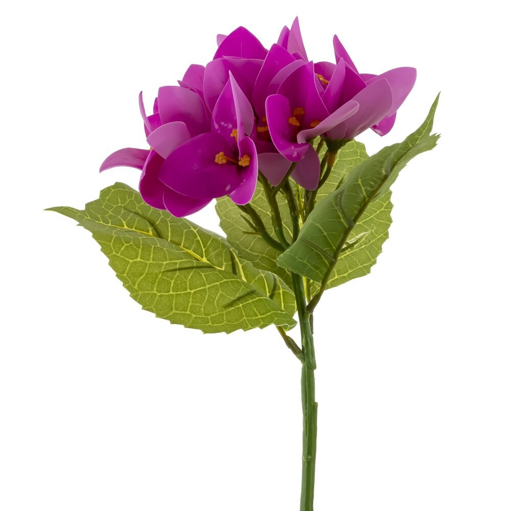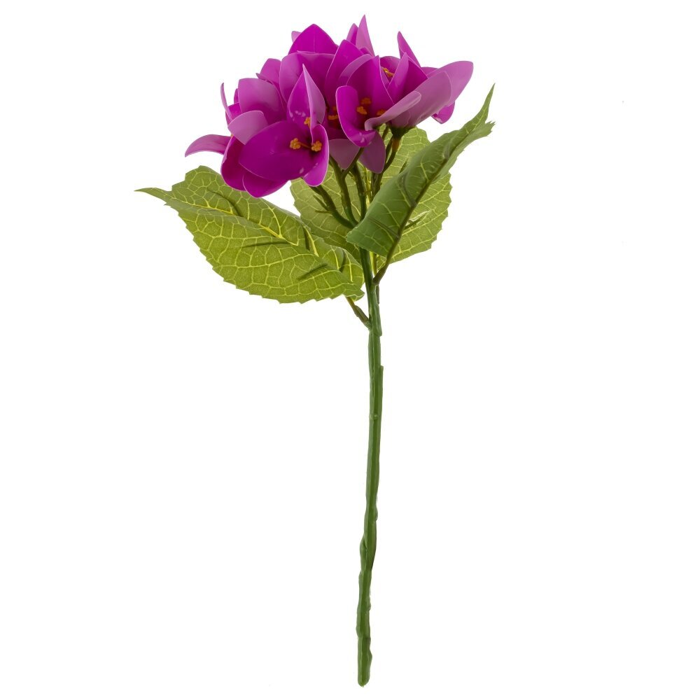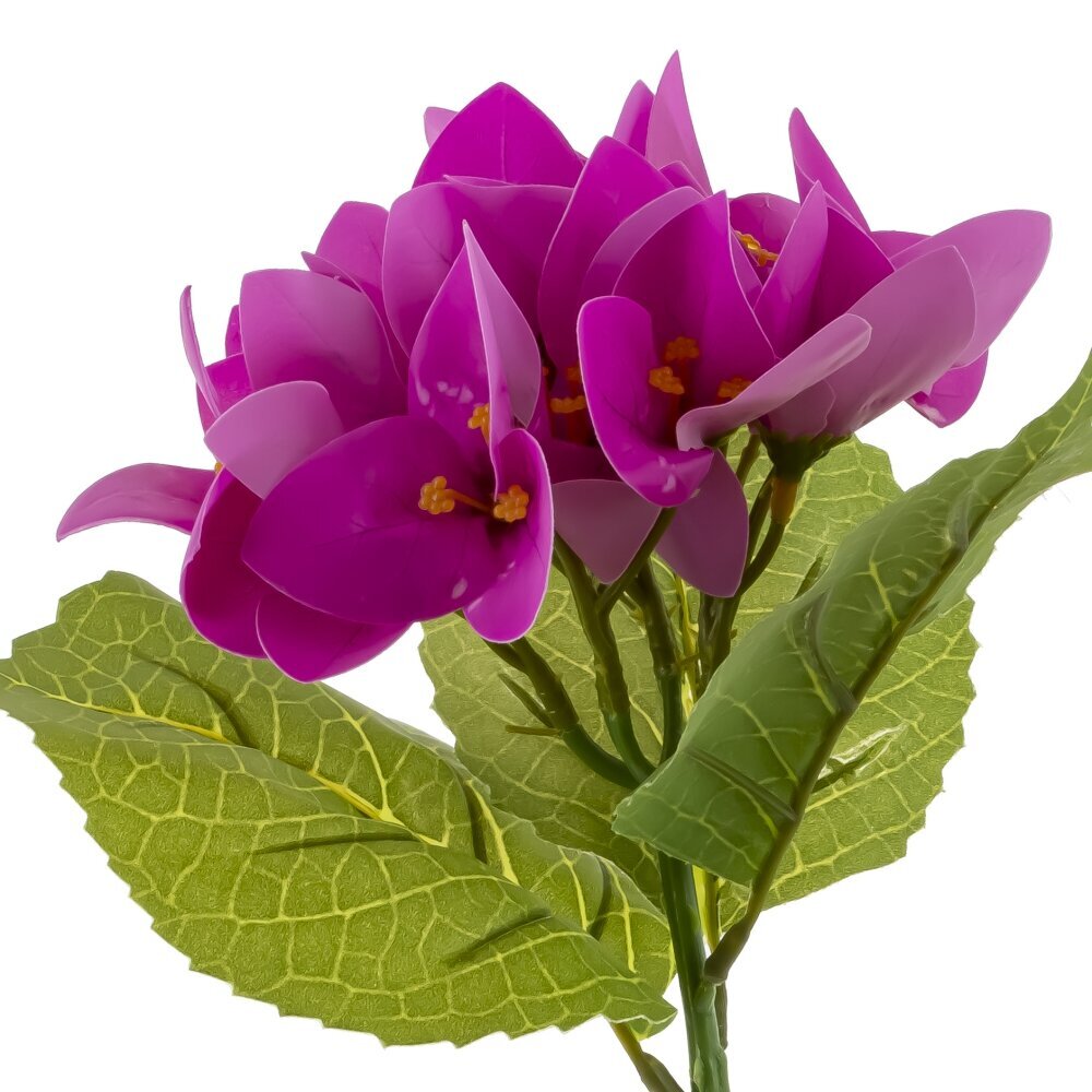 Искусственный цветок «Бугенвиллия» в технологии Real Touch — изящная веточка с насыщенно?пурпурными прицветниками и мягкими на ощупь лепестками, реалистично повторяющими натуральную текстуру. Плотные зелёные листья с выраженными прожилками и гибкий стебель позволяют легко придать изделию нужную форму в букете или флористической композиции. Не требует полива и особого ухода, не осыпается, сохраняет яркость оттенков и аккуратный вид в течение долгого времени. Подходит для домашнего интерьера, офисов, витрин и фотозон, гармонично сочетается с другой зеленью и цветами, добавляя пространству тропическую, солнечную нотку.