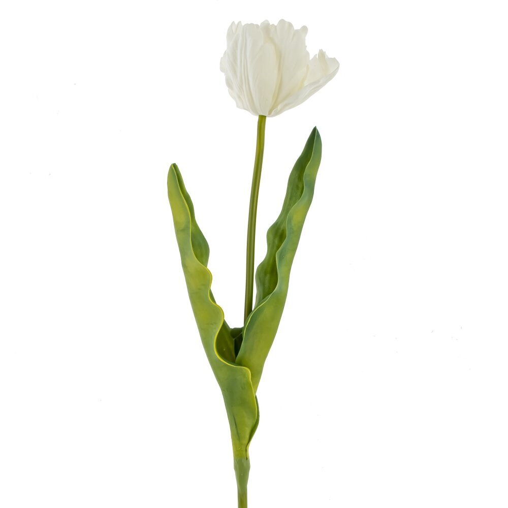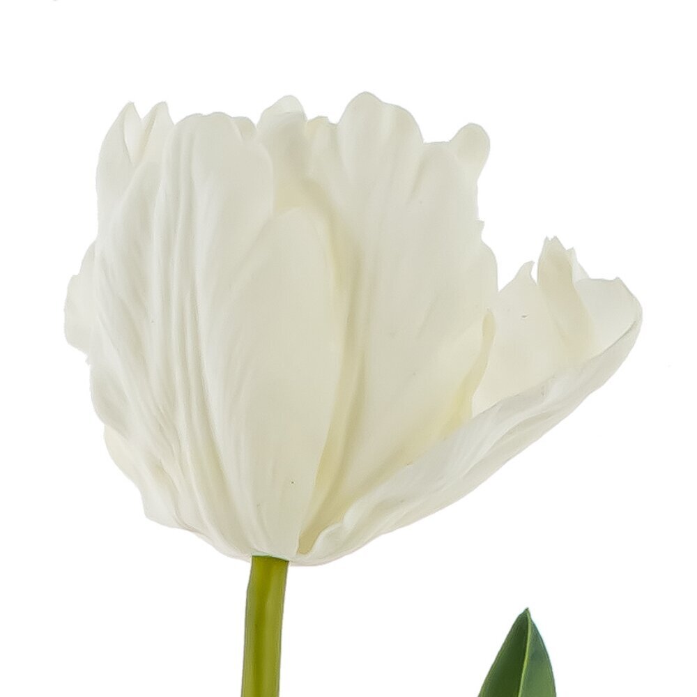 Искусственный цветок «Тюльпан» в белом цвете изготовлен по технологии Real Touch, благодаря которой он выглядит и ощущается почти как живой. Нежный бутон слегка раскрыт, лепестки с естественной волнистостью и мягкой матовой поверхностью создают правдоподобный объем. Длинные изогнутые листья насыщенно?зелёного оттенка с плавными переходами тонов поддерживают изящный силуэт стебля. Реалистичная текстура и упругость материала позволяют тюльпану сохранять форму, не требуют полива и особого ухода, не выгорают и подходят для многократного использования. Такой тюльпан органично впишется в современные и классические интерьеры, подойдет для составления букетов, оформления витрин, фотосъёмок и праздничного декора, даря ощущение свежести круглый год.