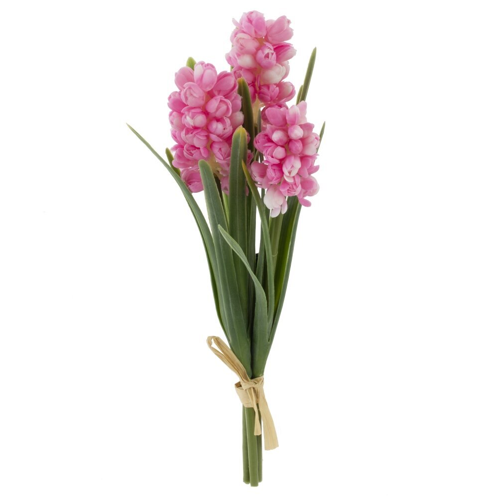 Искусственный букет гиацинтов – изящная декоративная композиция, выполненная из качественных полимерных материалов. Плотные соцветия розового оттенка и узкие глянцевые листья выглядят естественно и аккуратно, стебли объединены светлой бечёвкой. Букет не требует ухода, не вянет и надолго сохраняет форму и цвет, достаточно периодически протирать пыль сухой или слегка влажной салфеткой. Идеален для оформления интерьера дома, офиса, витрин, фотозон и праздничных композиций. Компактный и универсальный, легко впишется в классические и современные вазы, создавая ощущение свежести и весеннего настроения круглый год.