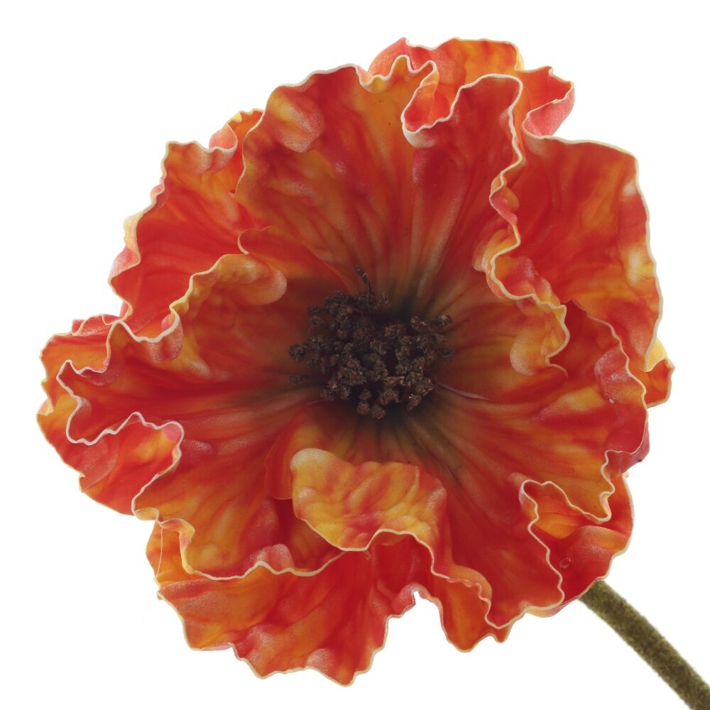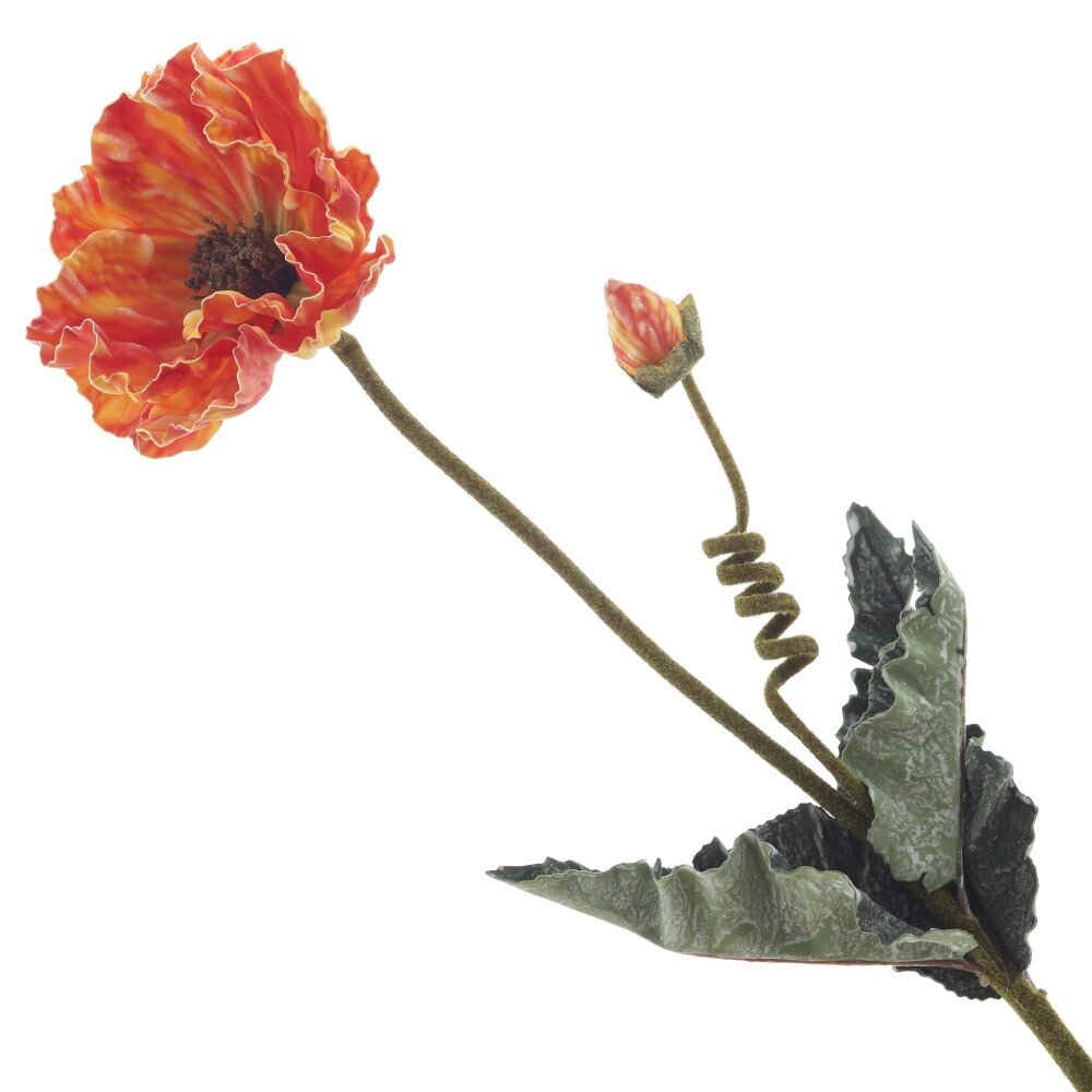 Искусственный цветок "Мак" прекрасно имитирует натуральное растение и станет ярким украшением любого интерьера. Его лепестки с плавными переходами цвета, которые прекрасно передают естественный вид мака. Сердцевина цветка и бутон выполнены очень детально, добавляя композиции реалистичности. Стебель зелёного оттенка гнётся, что позволяет подобрать оптимальное положение цветка при оформлении букетов или декора. Листья рельефные, с матовой поверхностью и характерной волнистой формой. Такой долговечный декоративный элемент хорошо подойдёт для украшения рабочего стола, гостиной или фотозоны, а также станет отличным подарком для ценителей оригинального декора.