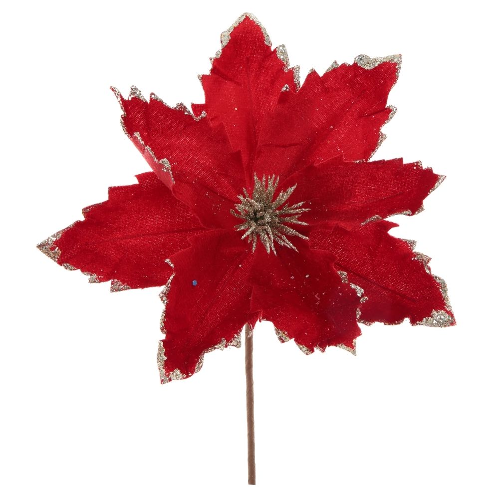 Рождественская пуансеттия. Лепестки выглядят невероятно эффектно: на их кончиках и серцевине мерцает россыпь блесток. Прикрепите этот стильный новогодний цветок на елку и она заиграет яркими красками.