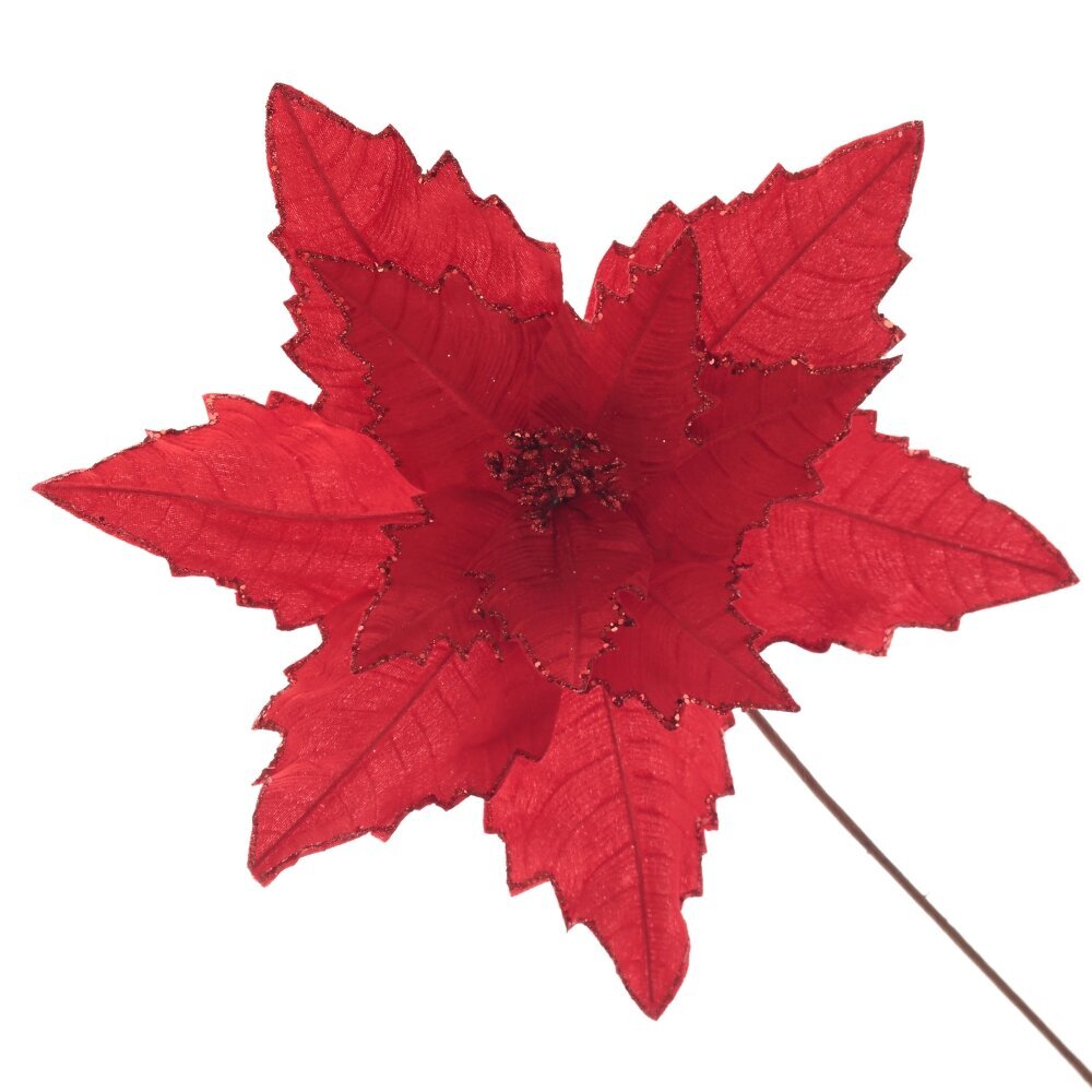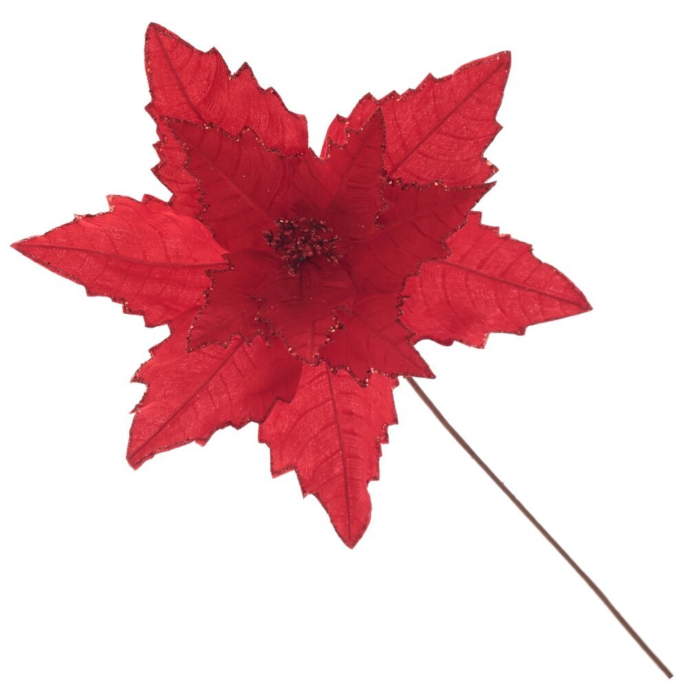 Этот потрясающий искусственный цветок Пуансеттия отличается своей красотой и дизайном. Его нежные красные лепестки обработаны блестящим глиттером по краю. Будет прекрасно смотреться в новогодних композициях или как украшение хвойной красавицы. Цветок привнесет чувство рождественского праздника в каждый уголок вашего дома.
