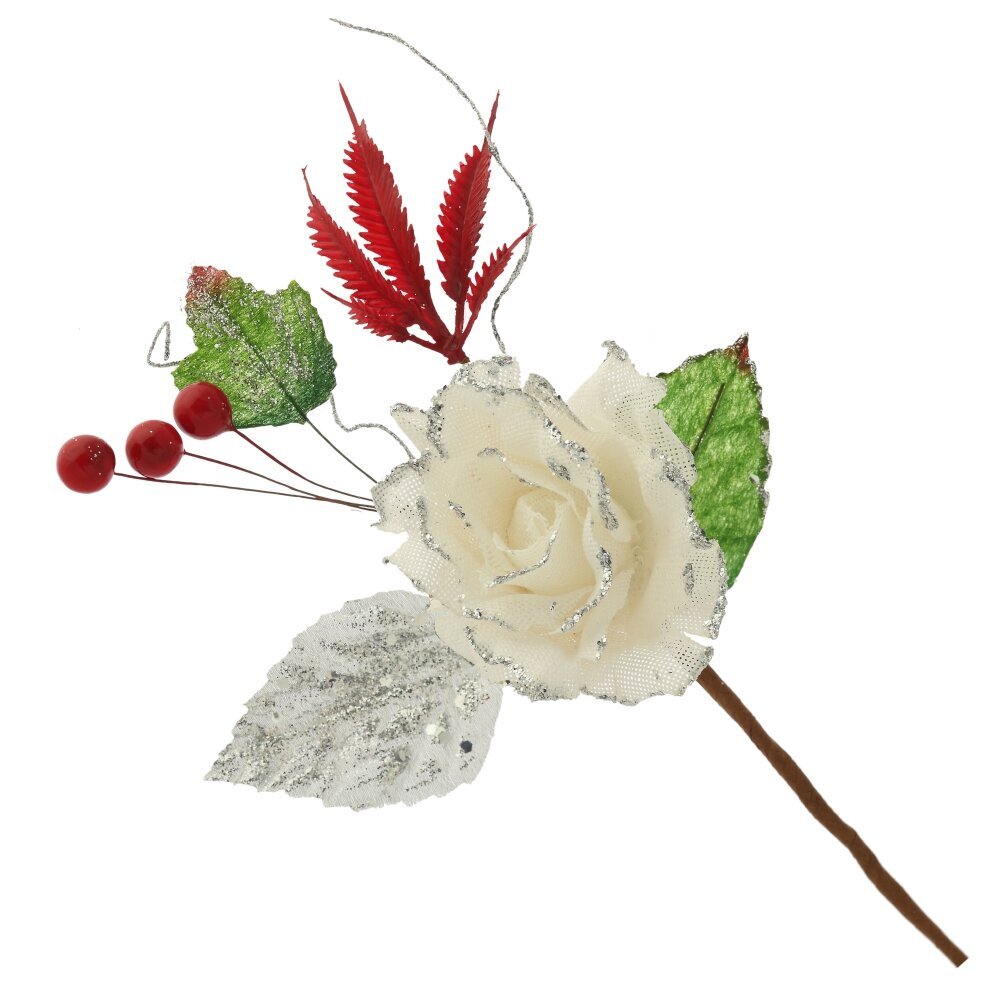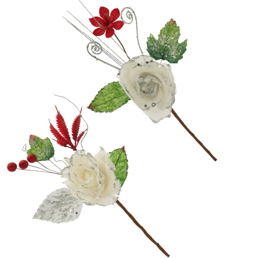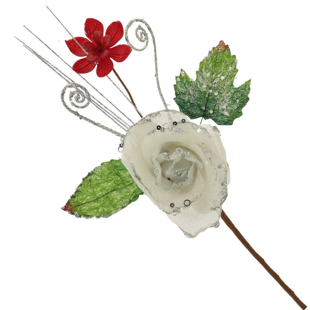Объемный цветок розы с декором из блесток. Прекрасное украшение для новогодней елки и флористических композиций. Представлен в двух вариантах.