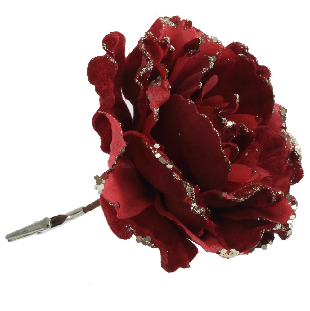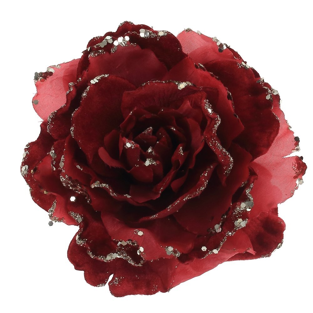Объемный цветок с бархатными лепестками и декором из блесток. Прекрасное украшение для новогодней елки и флористических композиций.