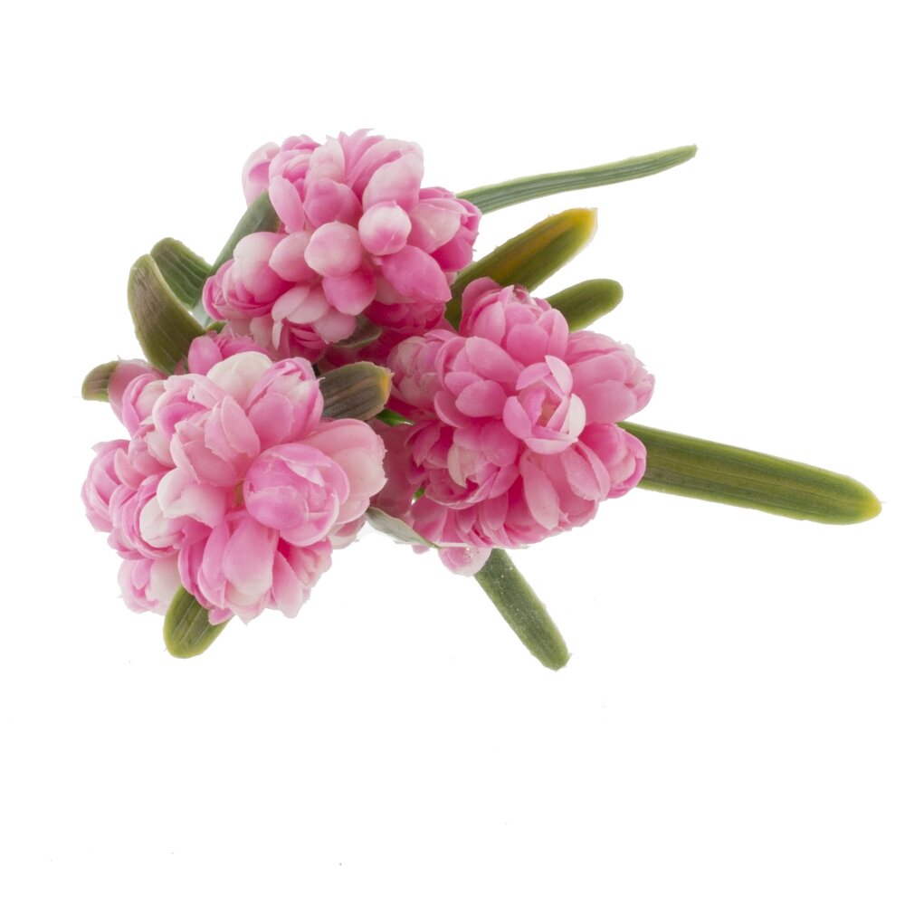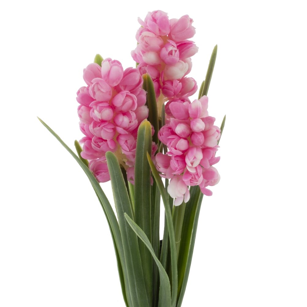 Искусственный букет гиацинтов – изящная декоративная композиция, выполненная из качественных полимерных материалов. Плотные соцветия розового оттенка и узкие глянцевые листья выглядят естественно и аккуратно, стебли объединены светлой бечёвкой. Букет не требует ухода, не вянет и надолго сохраняет форму и цвет, достаточно периодически протирать пыль сухой или слегка влажной салфеткой. Идеален для оформления интерьера дома, офиса, витрин, фотозон и праздничных композиций. Компактный и универсальный, легко впишется в классические и современные вазы, создавая ощущение свежести и весеннего настроения круглый год.