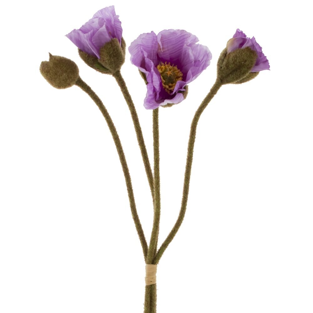 Искусственные цветы «Букет маков» — изящная композиция с нежными фиолетовыми соцветиями и бутонами. Лепестки и сердцевины выполнены из полимерных и текстильных материалов, что придаёт им естественную фактуру и мягкий полупрозрачный эффект. Стебли имеют металлическое армирование: их можно легко изгибать и придавать нужную форму в вазе или композиции. Букет не требует полива и особого ухода, долго сохраняет яркость, подходит для декора интерьера, фотозон, витрин и праздничных оформлений. Достаточно периодически протирать пыль сухой щёткой и беречь от длительного воздействия прямых солнечных лучей.