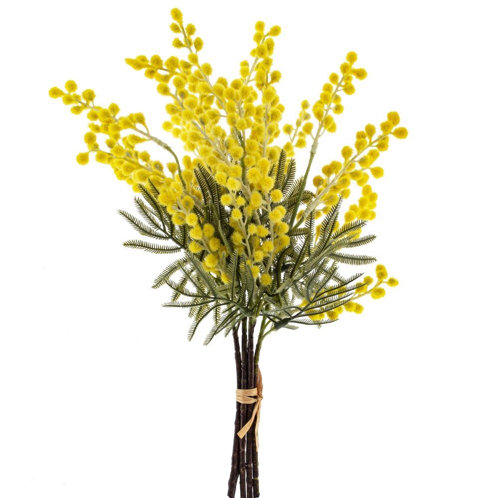 Искусственный цветок «Мимоза» в виде букетика из пяти веток — это великолепное решение для тех, кто хочет добавить в свой интерьер нотки нежности и весенней свежести. Каждый букетик пронизан яркими и насыщенными оттенками, которые прекрасно имитируют естественную красоту мимозы, известной своими симпатичными цветами и нежной текстурой. Размеры букета делают его универсальным для разнообразных дизайнерских решений: от украшения стола до создания эффектной композиции в вазе. Ветви букета тщательно проработаны, что позволяет достигнуть максимального сходства с натуральным цветком. Каждый элемент букета — от зелёных листьев до ярких цветочков — выполнен из качественных и долговечных материалов, что обеспечивает долговечность и устойчивость к воздействиям внешней среды. Искусственная мимоза не требует специального ухода, не боится солнечных лучей и всегда будет радовать глаз своим великолепным внешним видом. Этот букета станет отличным украшением для любого интерьера, включая как жилые помещения, так и офисные пространства. Он поможет создать атмосферу уюта, нежности и тепла, а также станет прекрасным фоном для особых мероприятий и праздников.