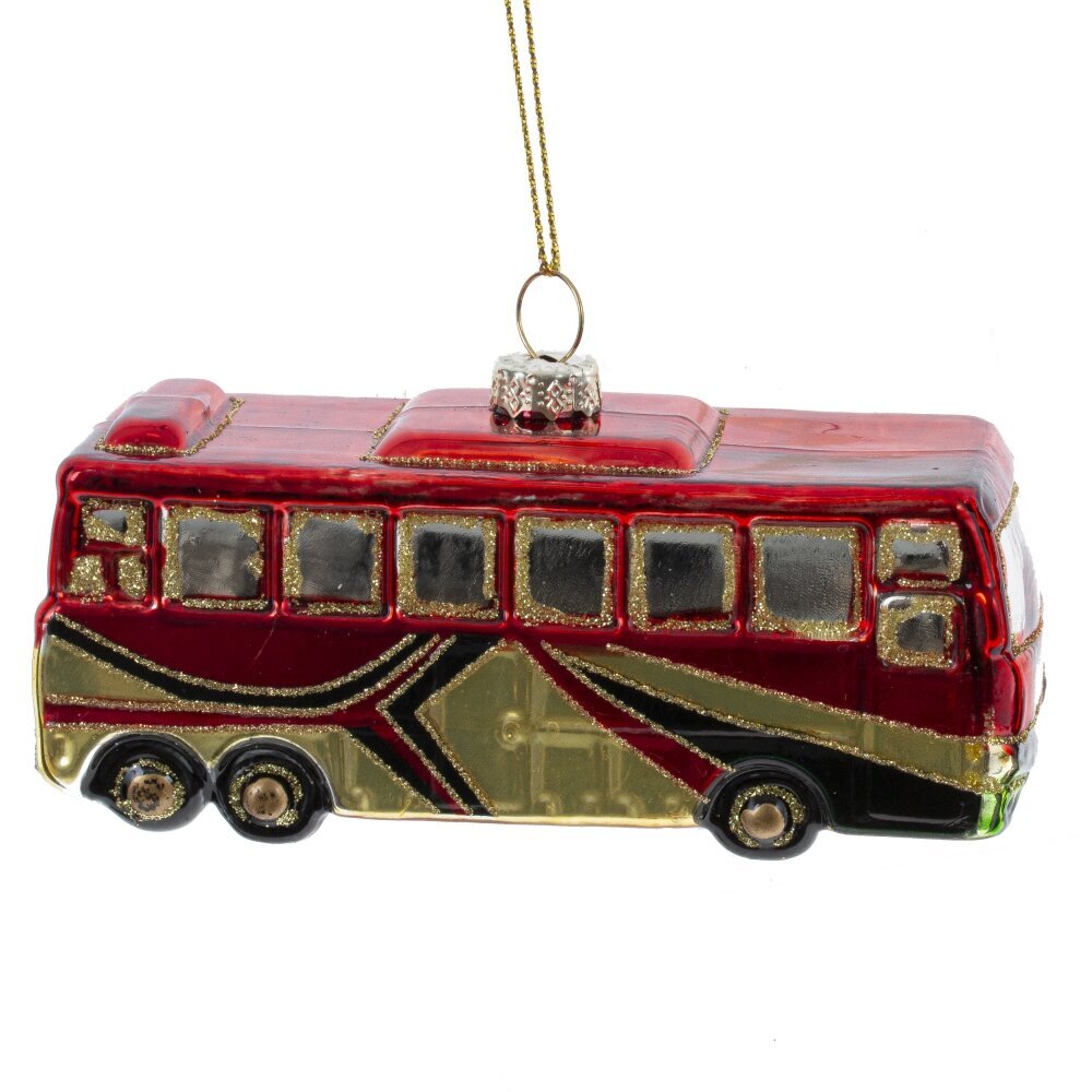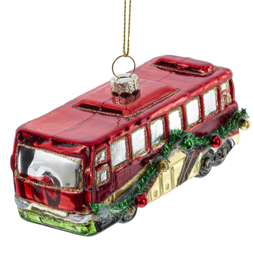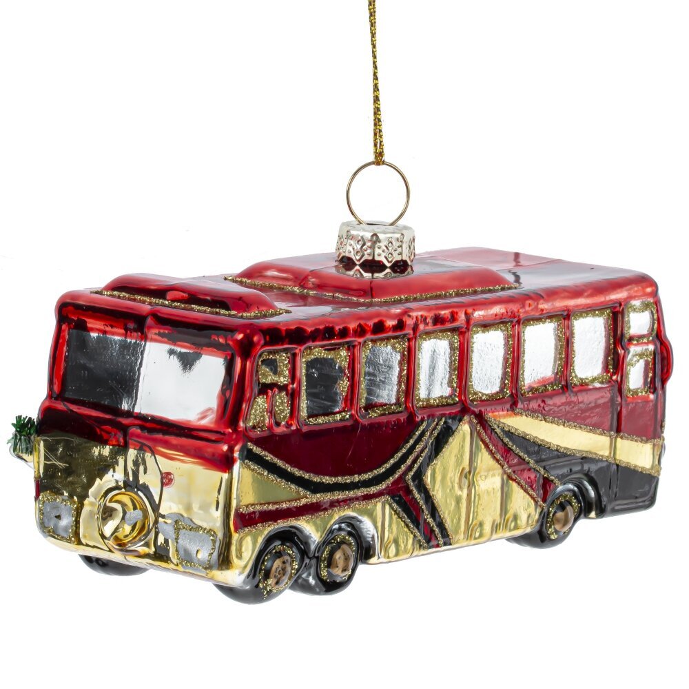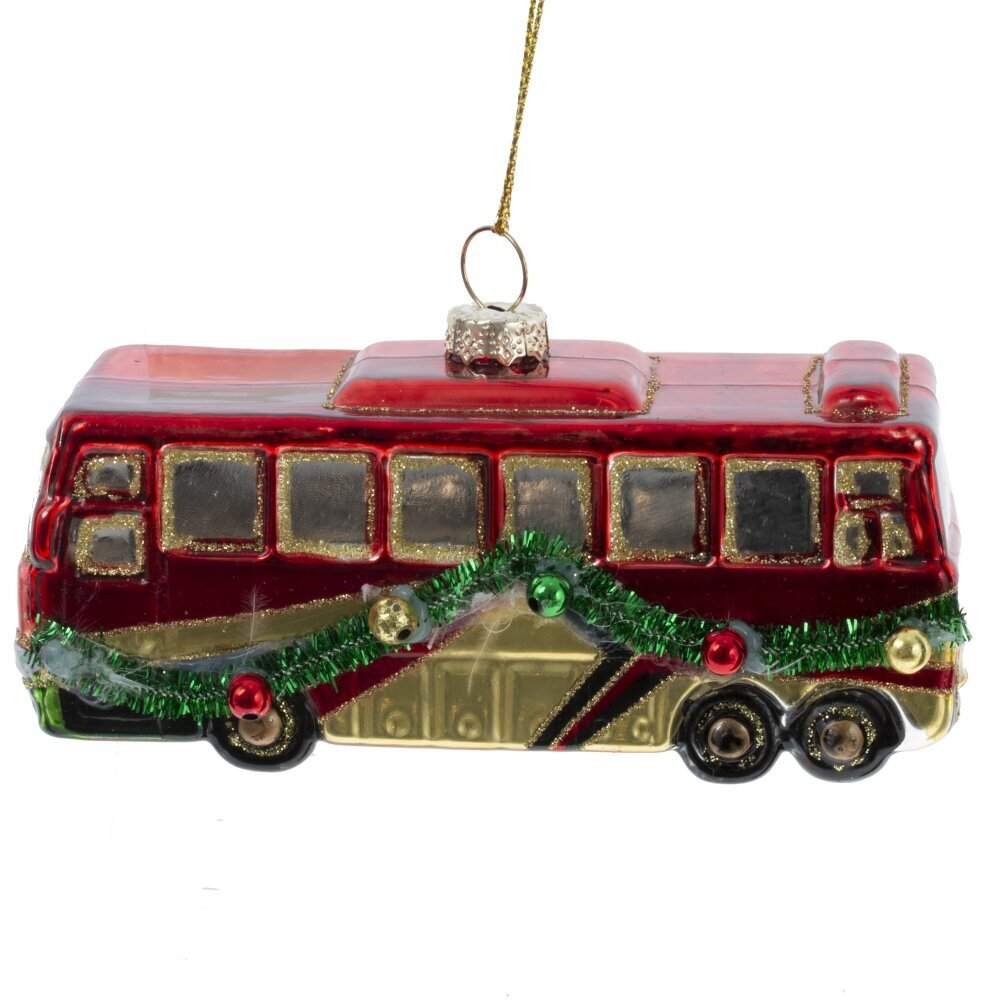 Яркое и атмосферное новогоднее украшение из стекла в виде красного автобуса, украшенного праздничной гирляндой, добавит оригинальности и уюта в ваш праздничный декор. Детально проработанный автобус с блестящими окнами, колёсами и гирляндой выглядит как сказочный транспорт, мчащийся навстречу новогоднему чуду. Выполненное из тонкого стекла с ручной росписью и блестящими акцентами, украшение переливается в свете гирлянд, создавая тёплое и радостное настроение. Такое украшение станет эффектным элементом на ёлке, особенно в интерьерах с винтажными или креативными акцентами, и порадует как взрослых, так и детей. Прекрасный вариант для подарка или коллекции необычных ёлочных игрушек.
