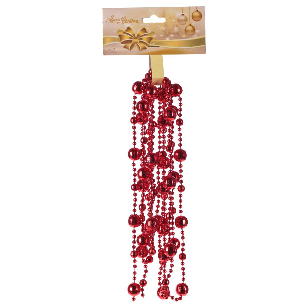 Бусы из полимерных материалов в виде крупных и мелких шариков, цвет красный, D14 мм, L2,7 м