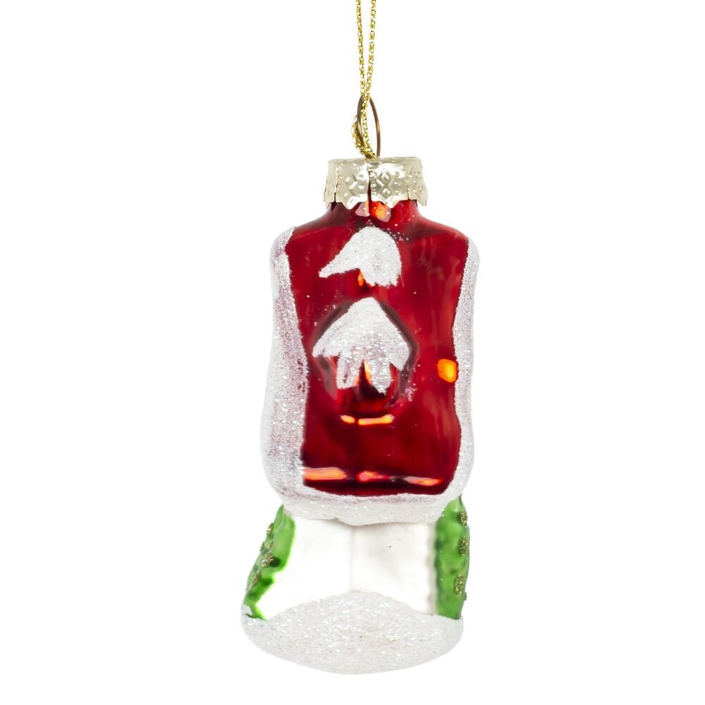 Очаровательное елочное украшение в виде стеклянного домика с красной крышей добавит уюта и волшебства вашему новогоднему декору. Крыша украшена искрящимся шиммером, который красиво переливается в свете гирлянд, создавая ощущение снежной сказки. Детали проработаны с особой тщательностью, что делает игрушку не только праздничной, но и по-настоящему атмосферной. Идеально для украшения елки или в подарок тем, кто ценит тепло домашнего уюта и магию Нового года.