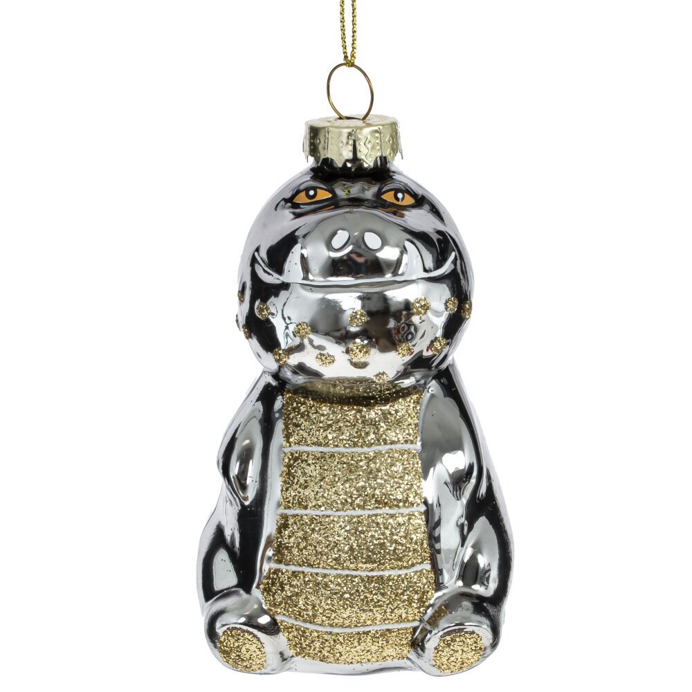 Игрушка елочная Дракон - прекрасный выбор для тех, кто любит создавать новогоднее настроение в своем доме. Эта стеклянная игрушка будет являтся символом года 2024, доставляя владельцу удачу и счастье.
