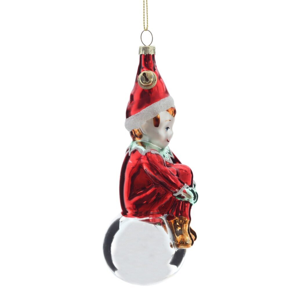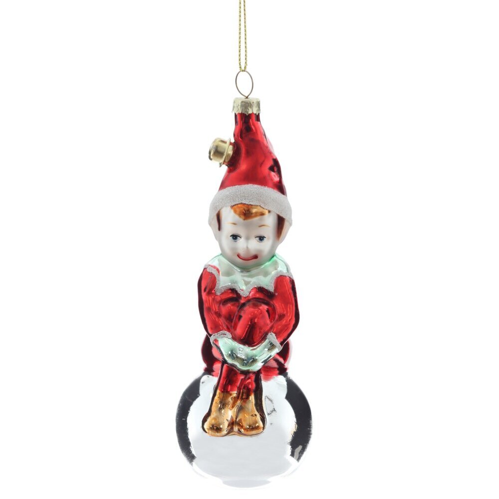 Забавный эльф в ярком красном костюме и колпаке — это атмосферное елочное украшение из стекла, которое наполнит ваш дом уютом и новогодним волшебством. Его образ выполнен с любовью к деталям: мерцающий декор и игривое выражение лица придают игрушке сказочный характер. Красный цвет костюма символизирует праздник, тепло и радость, делая гнома заметным и ярким акцентом на елке. Такое украшение подойдёт как для классического новогоднего интерьера, так и для коллекции оригинальных фигурок. Прекрасный выбор для подарка или украшения с характером!