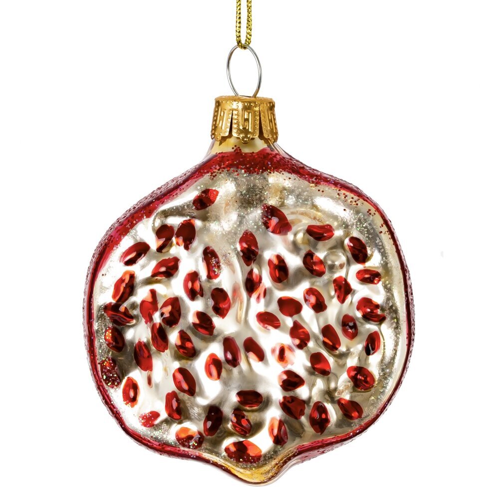 Елочное украшение из стекла в виде граната — это изысканный и символичный элемент новогоднего декора, олицетворяющий изобилие, плодородие и благополучие. Выполненное вручную из тонкого стекла, украшение отличается насыщенным бордовым или тёмно-красным цветом с глянцевым блеском, который придаёт ему реалистичный и праздничный вид. Форма граната тщательно проработана: рельефная поверхность напоминает кожуру настоящего плода, а верхушка оформлена в виде декоративной короны с золотистыми или серебристыми акцентами. Некоторые модели могут быть стилизованы с открытым «надрезом», сквозь который виднеются стеклянные зёрна — сверкающие капельки, напоминающие рубины. Такое украшение не только украсит ёлку, но и станет символом процветания и удачи в новом году.