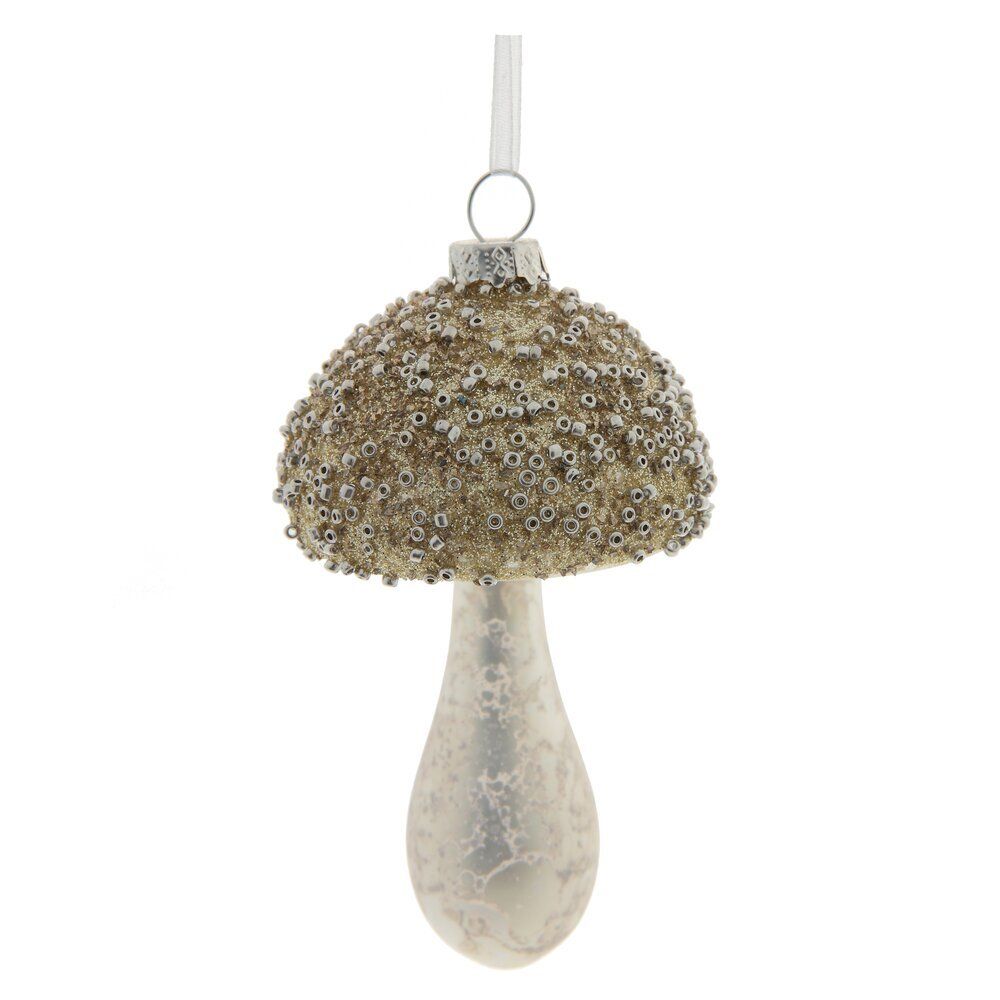 Очаровательное подвесное украшение в виде гриба вызывает улыбку и теплые чувства. Его золотая шляпка с бисером придает ему особый блеск и шарм. Это украшение станет гордостью вашей коллекции елочных игрушек и займет почетное место на новогодней елке. Милый грибок добавит уюта и волшебства в ваш дом, создавая атмосферу радости и праздника.