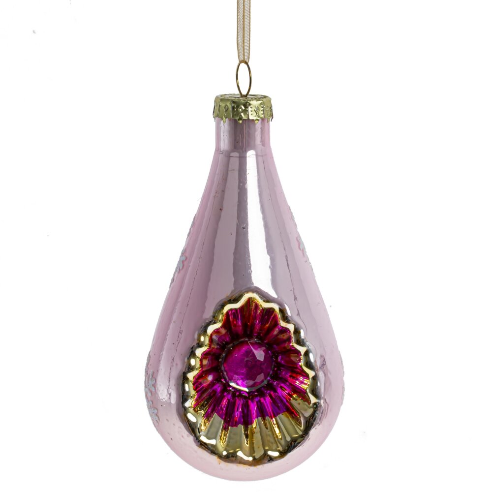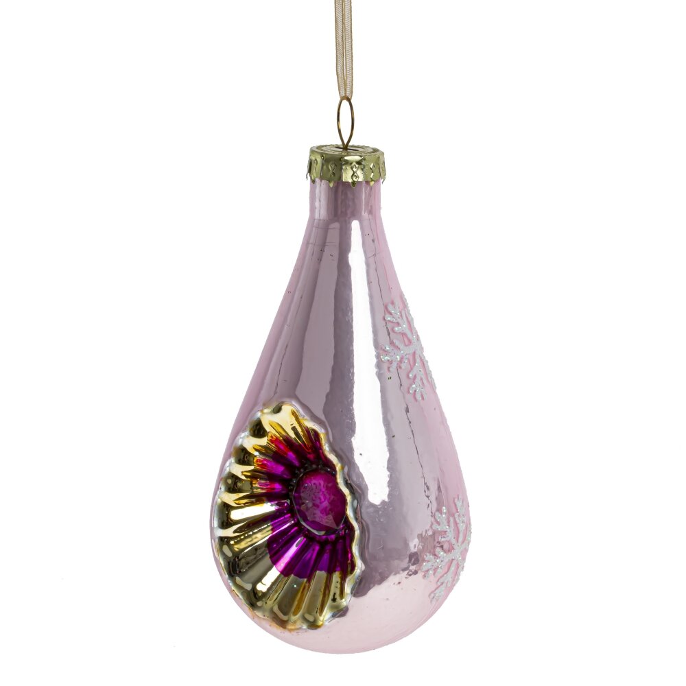 Украшение новогоднее "Капля", изготовлено из стекла. Необычный шар-фонарик в виде капли с перламутровым блеском ,рисунком в виде снежинок и стразом подойдет к любой традиционной новогодней коллекции шаров для украшения елки.