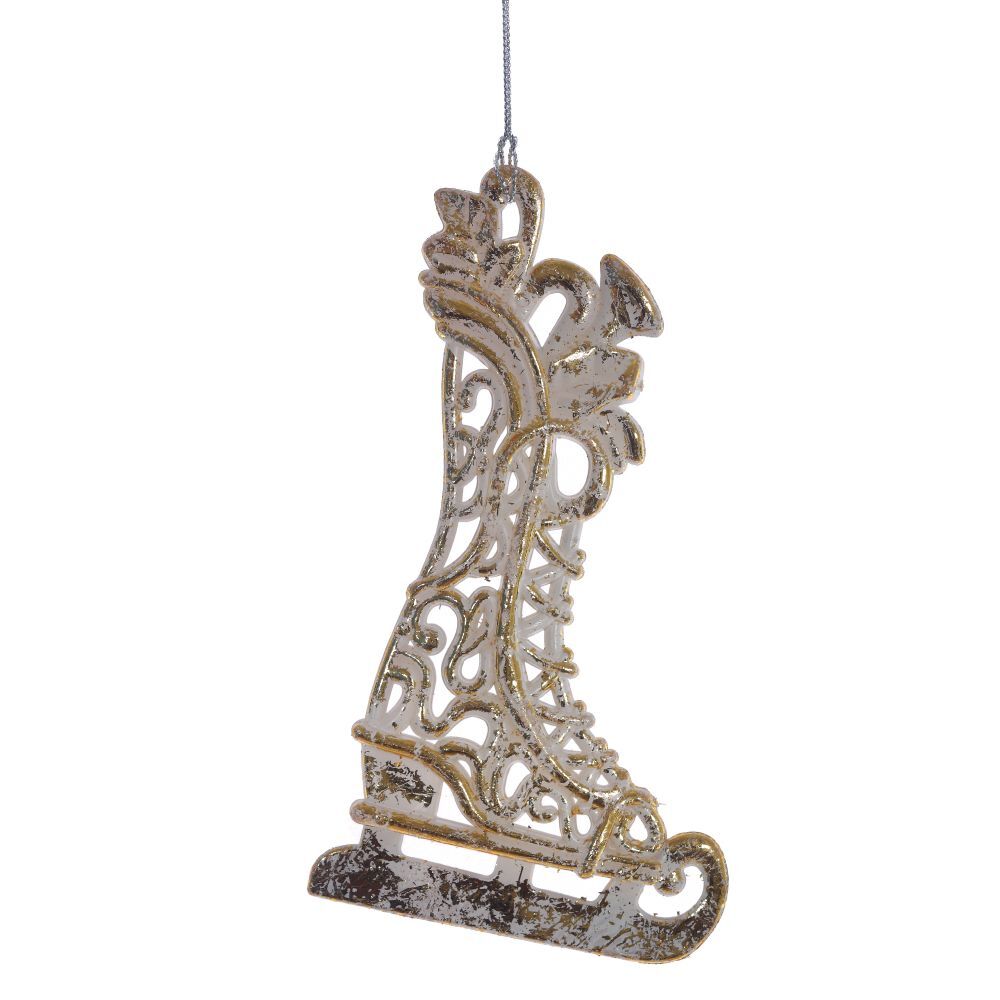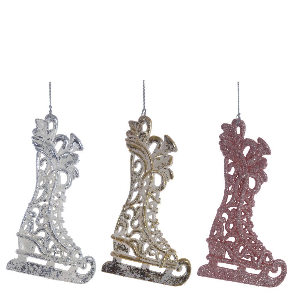 Елочное украшение в виде фигурных Коньков. Благодаря прекрасному ажурному узору игрушка выглядит нежно и воздушно, а торжественно украшенную новогоднюю елку наполнит романтикой и изяществом. Представлено в трех вариантах.