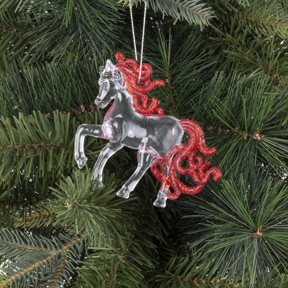Новогоднее украшение "Лошадь" – элегантное украшение в виде символического знака 2026 года. Изготовлено из полимерных материалов, что придает изделию прозрачный и изящный вид. Идеально подходит для создания праздничного декора, украшения елки или оригинального подарка. Прекрасный элемент декора, сочетающий прозрачность полимерных материалов и изысканный оттенок. Добавьте нотку благородства в новогоднюю атмосферу и создайте волшебство в свой дом.