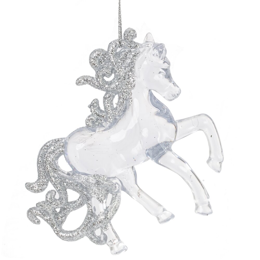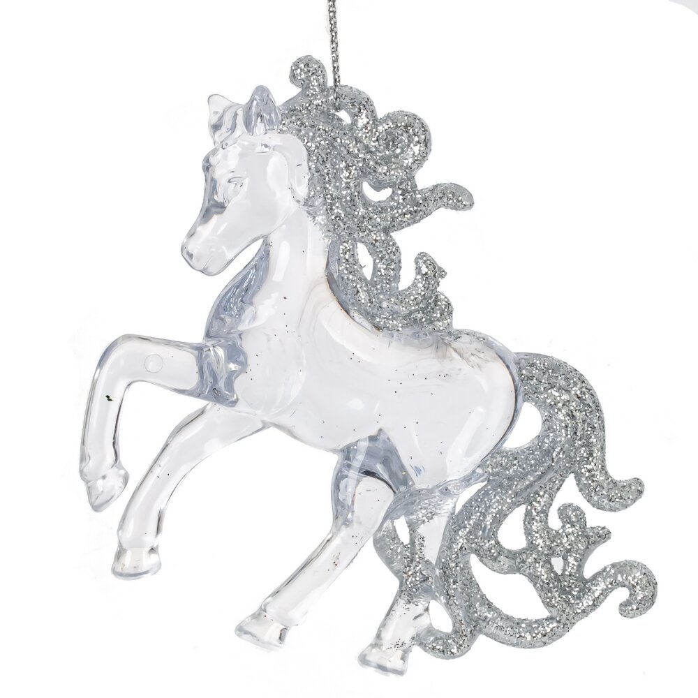 Новогоднее украшение "Лошадь" – элегантное украшение в виде символического знака 2026 года. Изготовлено из полимерных материалов, что придает изделию прозрачный и изящный вид. Идеально подходит для создания праздничного декора, украшения елки или оригинального подарка. Прекрасный элемент декора, сочетающий прозрачность полимерных материалов и изысканный оттенок. Добавьте нотку благородства в новогоднюю атмосферу и создайте волшебство в свой дом.