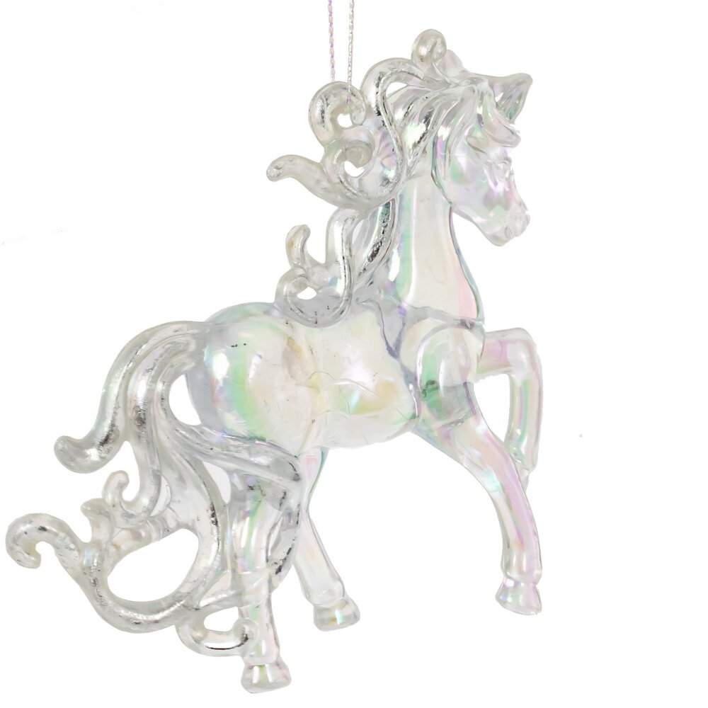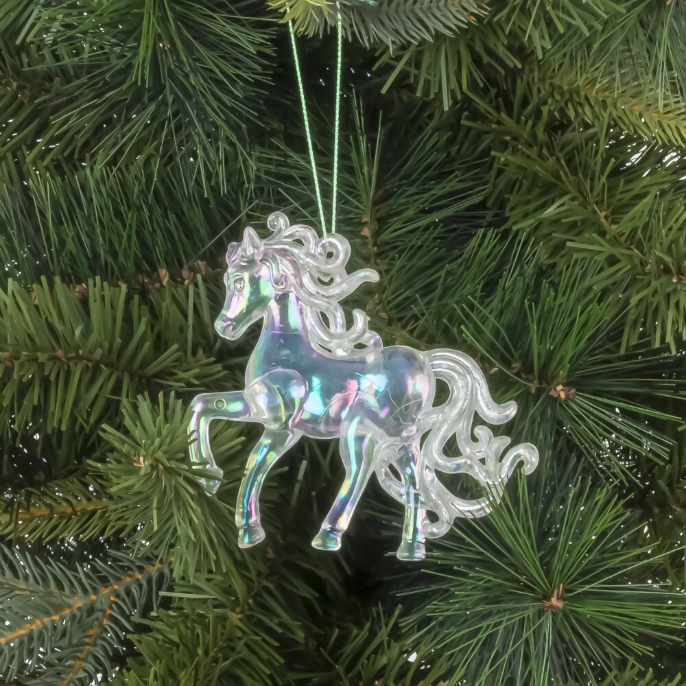 Новогоднее елочное украшение "Лошадь" — это очаровательный акцент для праздничной ели, воплощающий волшебство зимних сказок! Изготовлено из прозрачного полиакрила, который создает нежный цветной перелив, напоминающий радужные мыльные пузыри, мерцающие в свете гирлянд. Лошадка изображена в грациозной позе, с серебристой густой кудрявой гривой и хвостом, будто развевающимися на ветру. Прекрасный подарок, который принесет радость и блеск в новогоднюю ночь!