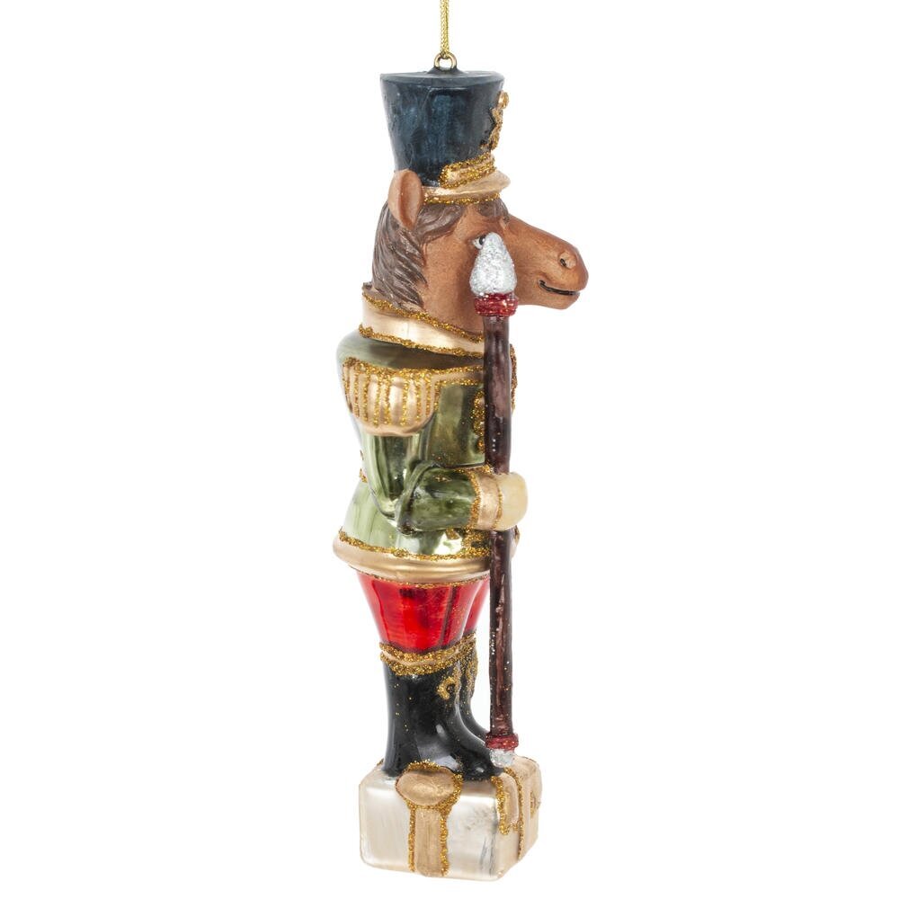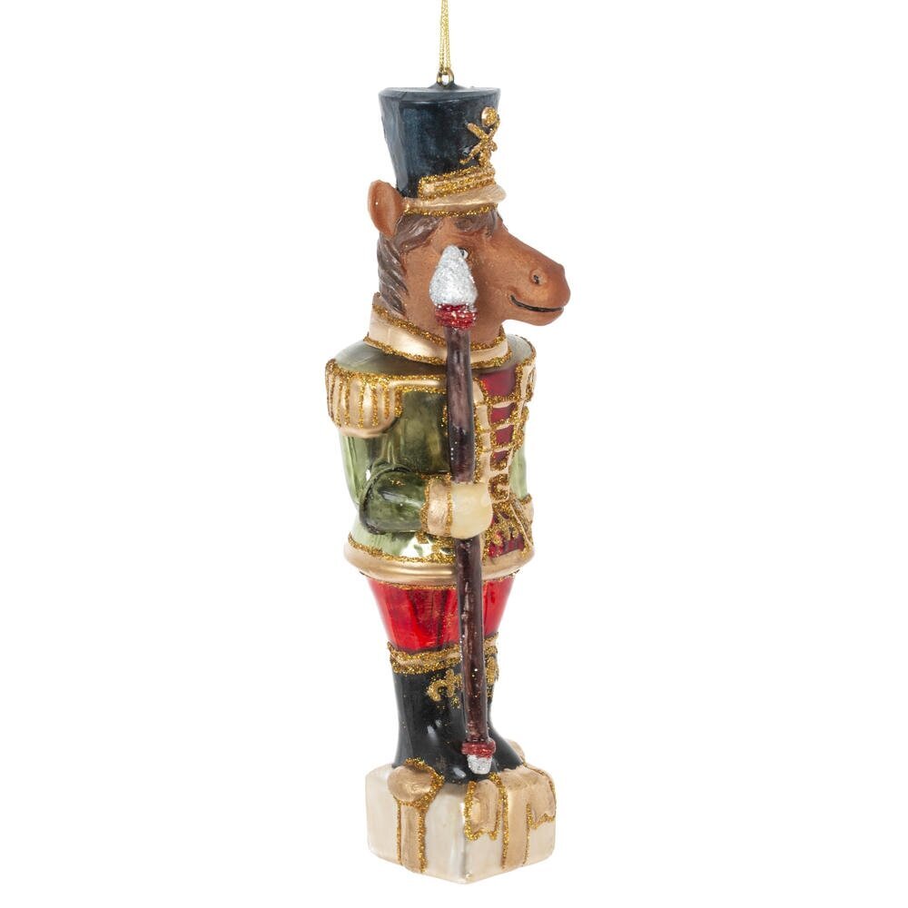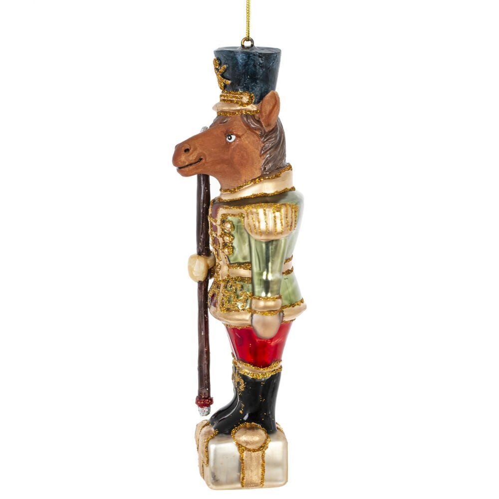 Добавьте волшебства в праздничное оформление с этим изысканным новогодним украшением из стекла в форме лошади-солдатика. Идеально выполненное изделие сочетает в себе яркие цвета, блестящие акценты и тонкую проработку деталей, создавая ощущение сказки и уюта. Такое украшение украсит вашу ёлку, интерьер или станет оригинальным подарком для ценителей классического новогоднего декора. Лошадь-солдатик символизирует отвагу, силу и движение вперёд — отличный талисман на Новый год!