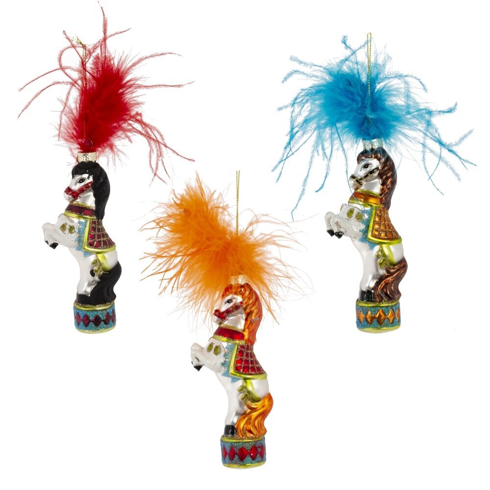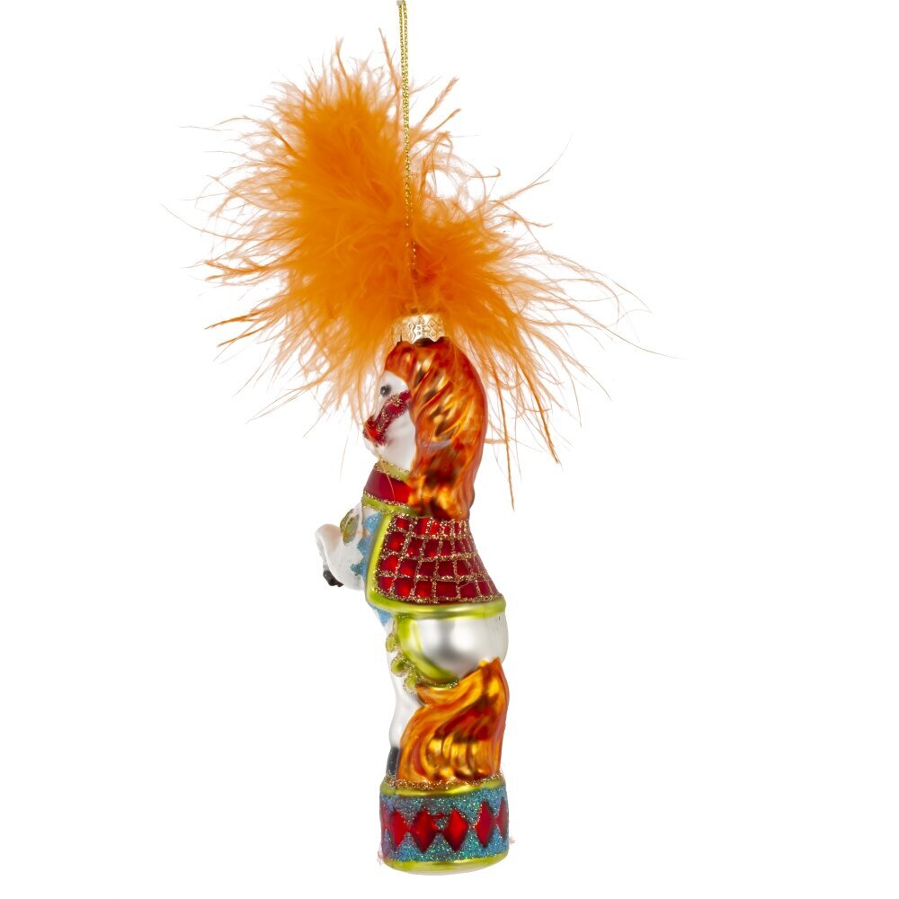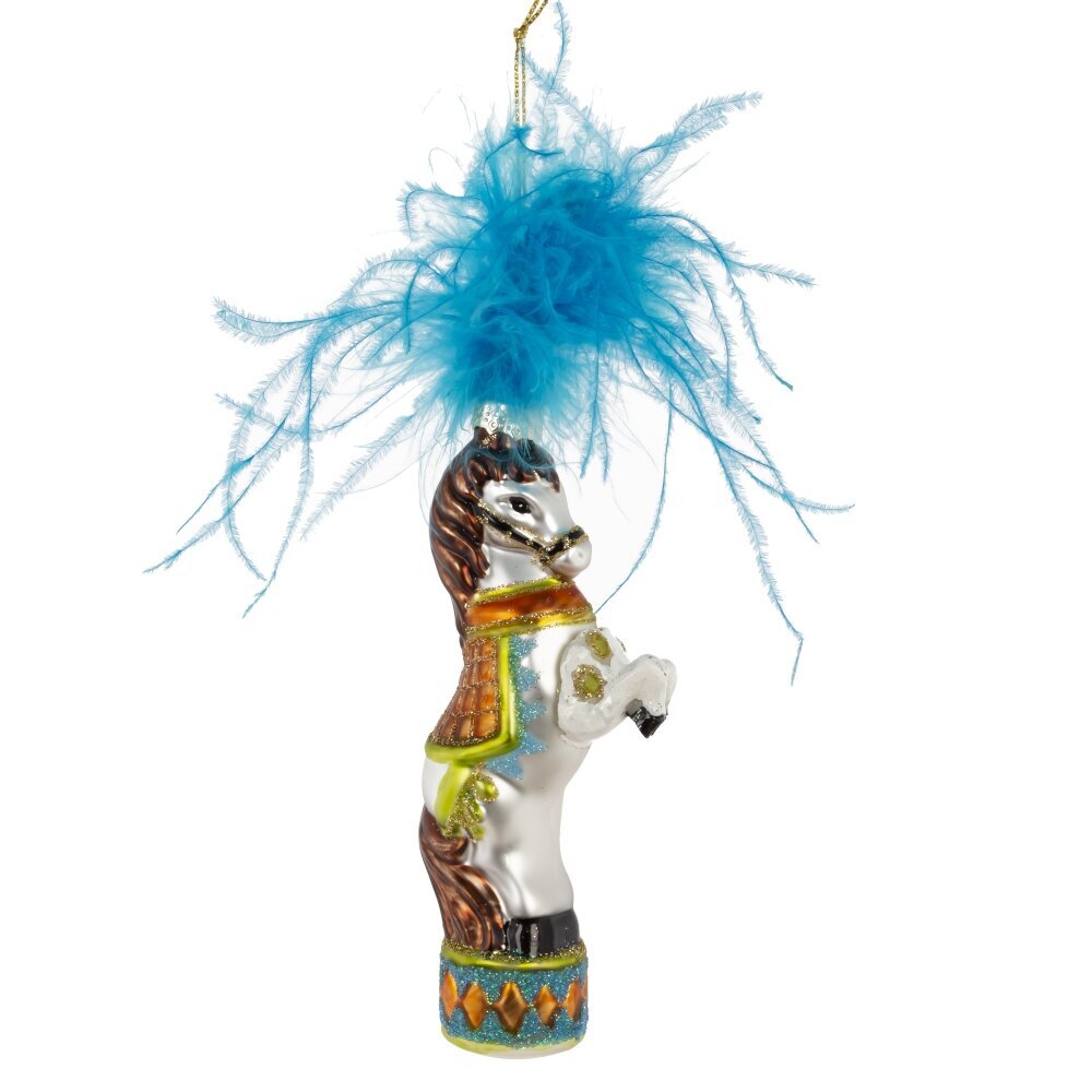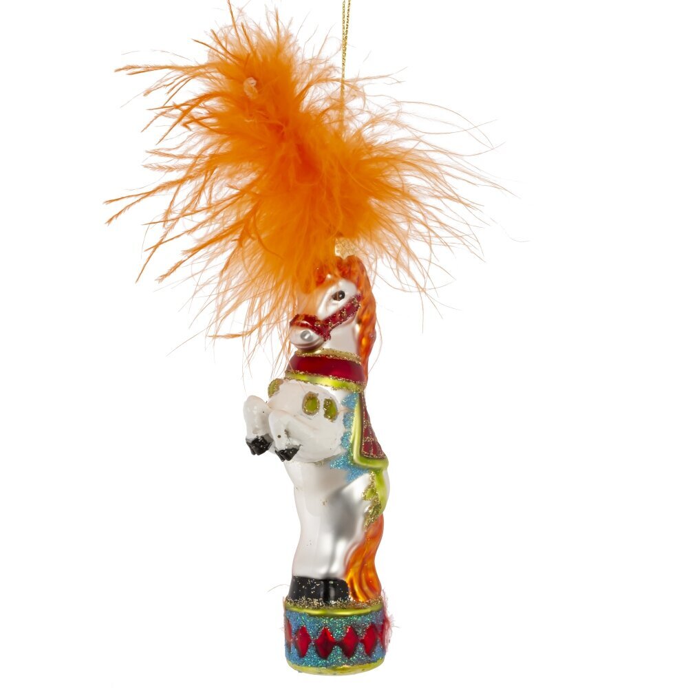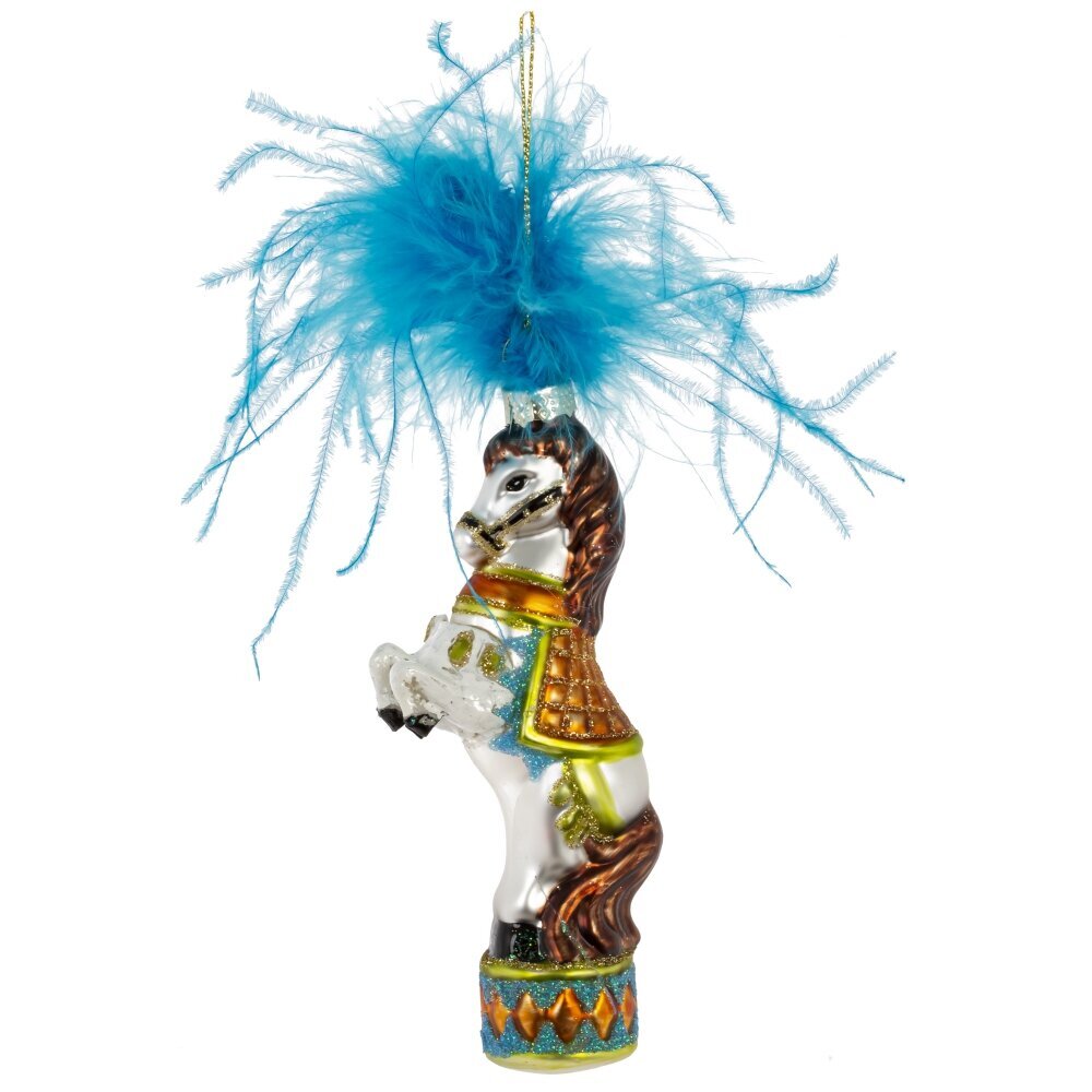 Ёлочное украшение «Цирковая лошадка» — это яркий и необычный акцент для праздничной ёлки, способный привлечь внимание и создать атмосферу волшебства. Выполненная с тонкой проработкой деталей, лошадка украшена красочными перьями на голове, что придаёт ей игривый, торжественный образ, напоминающий о цирковом представлении и радости детства. Такое украшение прекрасно сочетается с классическим и креативным декором, добавляя новогоднему убранству изюминку и настроение праздника. Лёгкая и прочная, она удобно крепится на ветку и станет любимым элементом в вашей коллекции ёлочных игрушек.