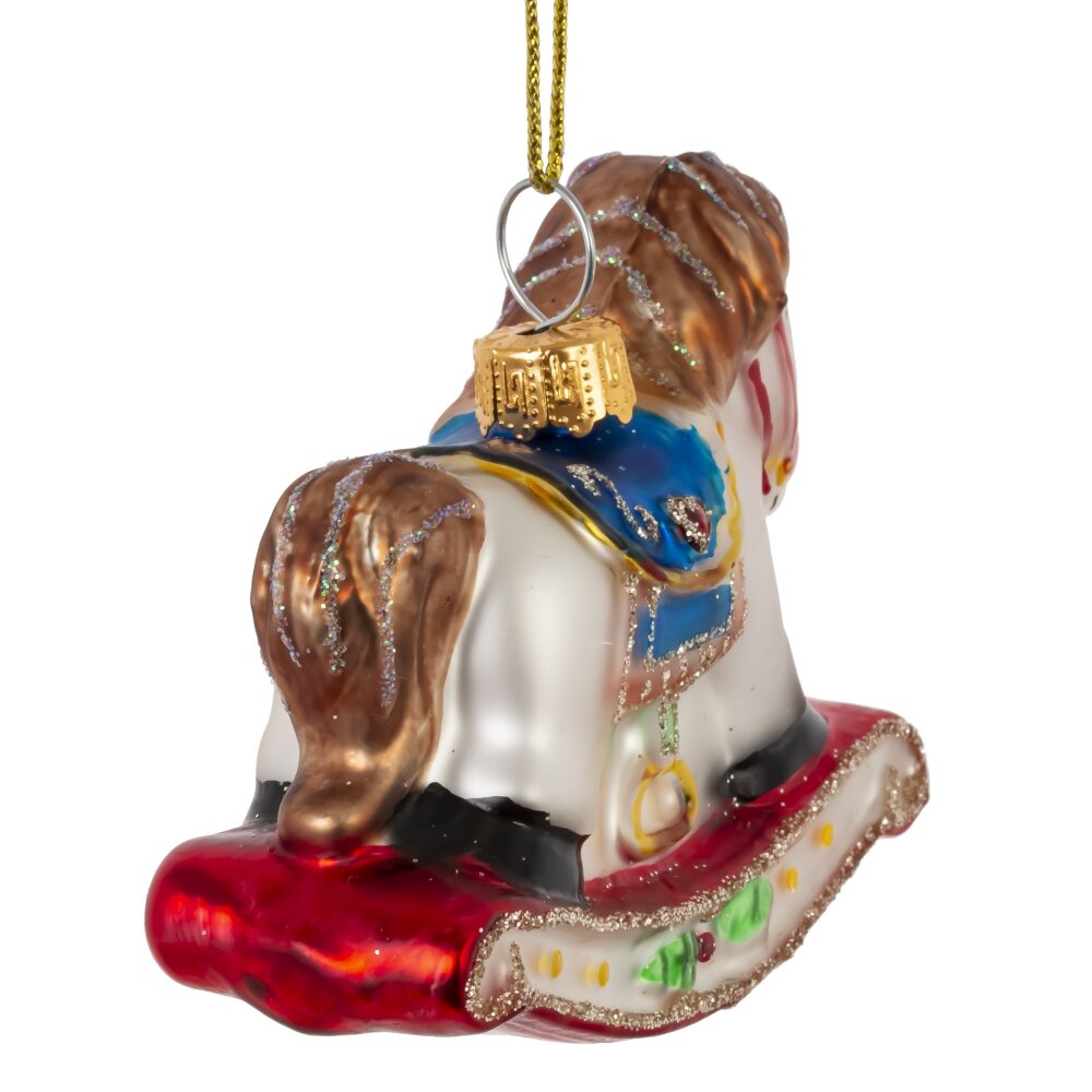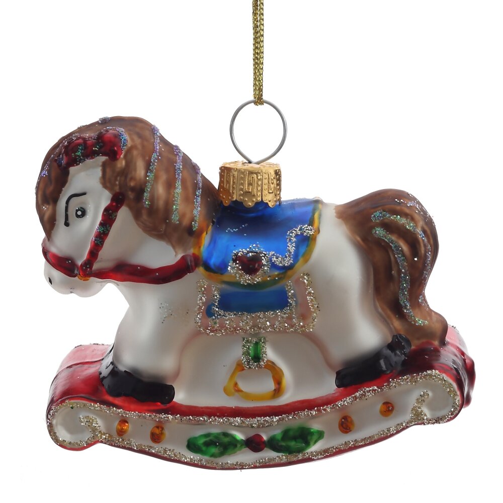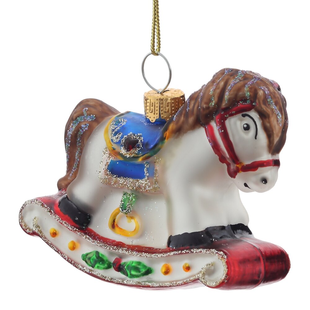 Вот она - настоящая классика елочных украшений. Стеклянная игрушка в форме лошадки-качалки, выполнена в традиционном стиле, дарит самое теплое ощущение настоящего новогоднего волшебства.
