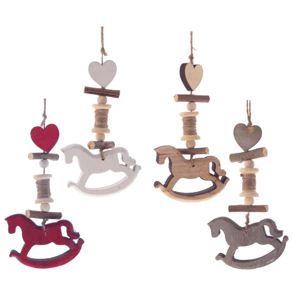 Деревянная елочная игрушка в виде Лошадки-кочалки станет оригинальным дополнением убранства хвойной красавицы в экостиле и наполнит дом уютной и теплой атмосферой. Представлена в четырех вариантах.