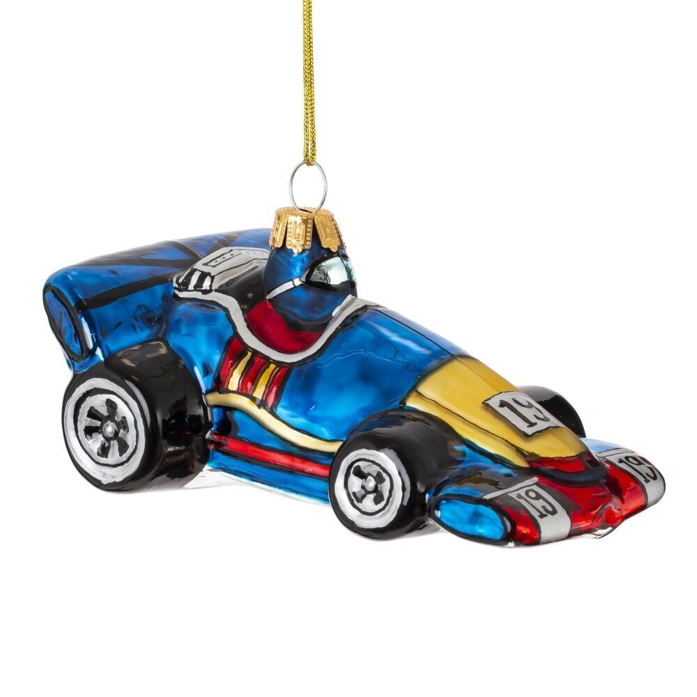 Ёлочное украшение в виде гоночной машинки выполнено из высококачественного стекла, что придаёт изделию утончённый блеск и изящество. Детализированная форма, яркие цвета и глянцевая поверхность делают эту игрушку настоящим украшением новогодней ели. Стеклянная машинка выполнена в оригинальном дизайне и станет отличным выбором для ценителей нестандартных и стильных декоративных элементов. Такое украшение не только украсит ёлку, но и станет ярким символом скорости, движения и новогоднего настроения. Идеально подойдёт для коллекционеров или в качестве подарка.