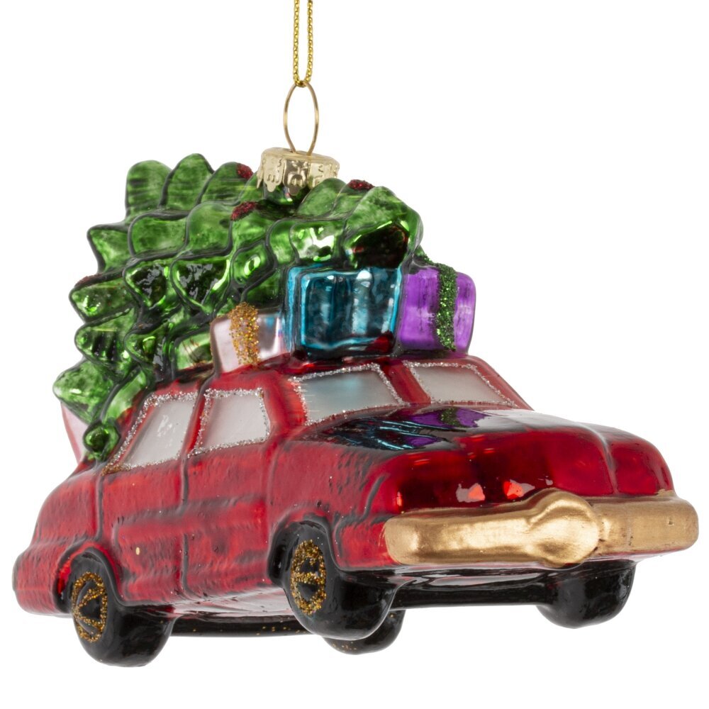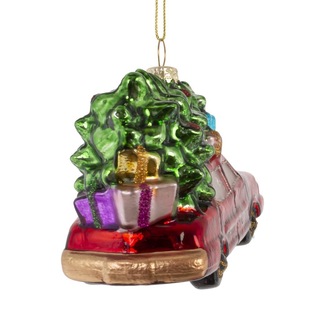 Яркое и ностальгическое украшение из стекла — красная машина с пушистой ёлкой на крыше — воплощает атмосферу настоящего семейного праздника. Игрушка выполнена с тонкой проработкой деталей: блестящая поверхность кузова, сияющие элементы декора и реалистичная ёлочка создают эффект тёплого новогоднего путешествия. Мерцающий шиммер добавляет волшебства, отражаясь в огоньках гирлянд. Эта стеклянная фигурка станет ярким акцентом на вашей ёлке, вызывая улыбку и создавая ощущение уюта, радости и приближающегося чуда. Идеальный выбор для тех, кто ценит традиции и душевный праздничный декор.