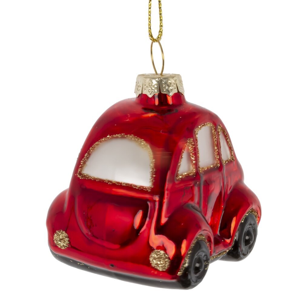 Стильное ёлочное украшение из стекла в виде яркой красной машины — это воплощение новогоднего уюта и тёплых воспоминаний. Глянцевая поверхность, насыщенный цвет и мерцающий декор придают игрушке праздничный блеск и создают настроение путешествия в зимнюю сказку. Каждая деталь выполнена с особой тщательностью: от изящных форм до декоративных акцентов, благодаря чему фигурка выглядит живо и атмосферно. Красная машина отлично подойдёт для классического или ретро-стиля оформления ёлки и станет прекрасным подарком, символизирующим движение к новым мечтам и праздничным приключениям.