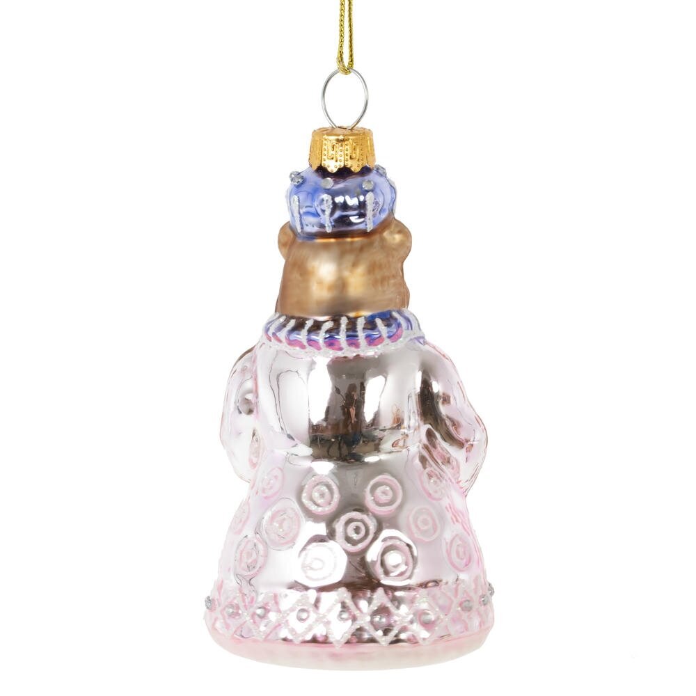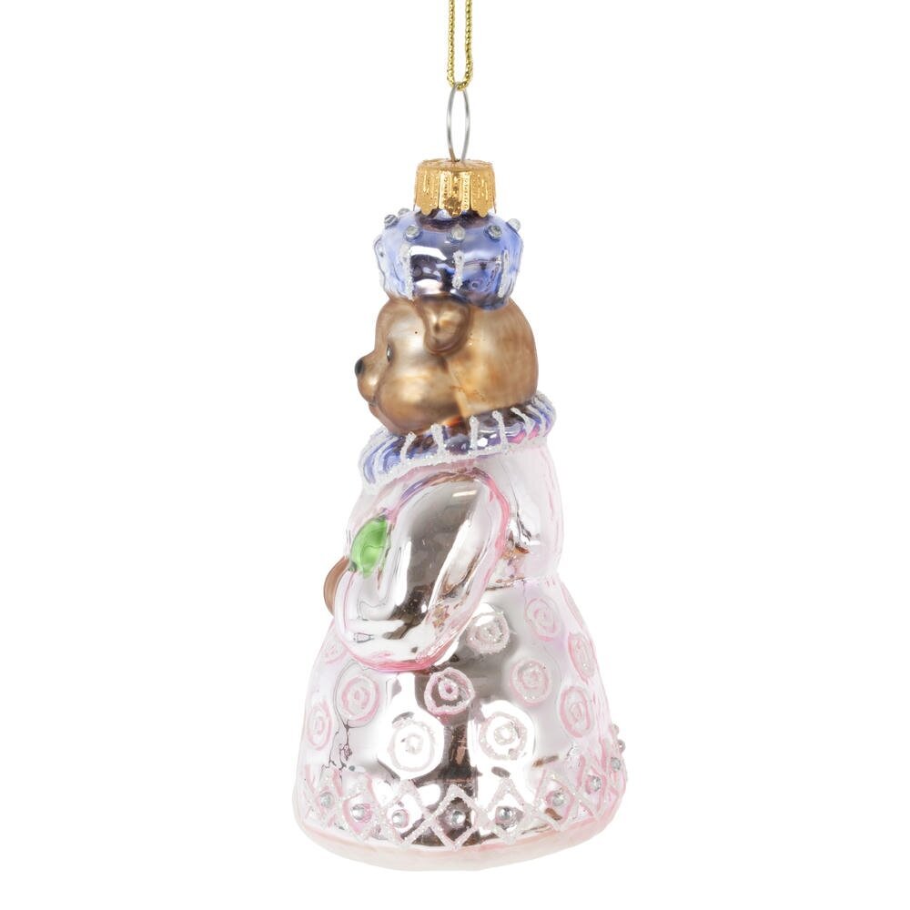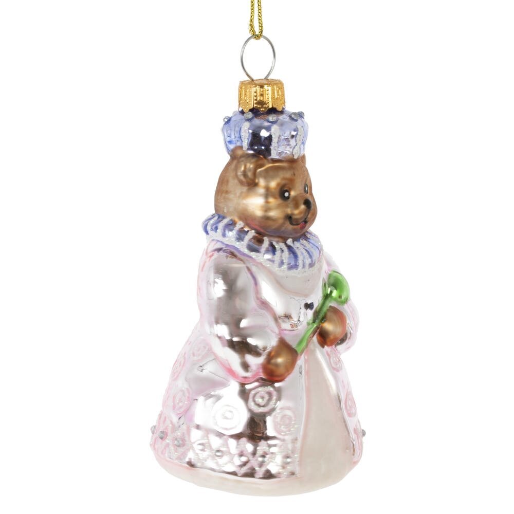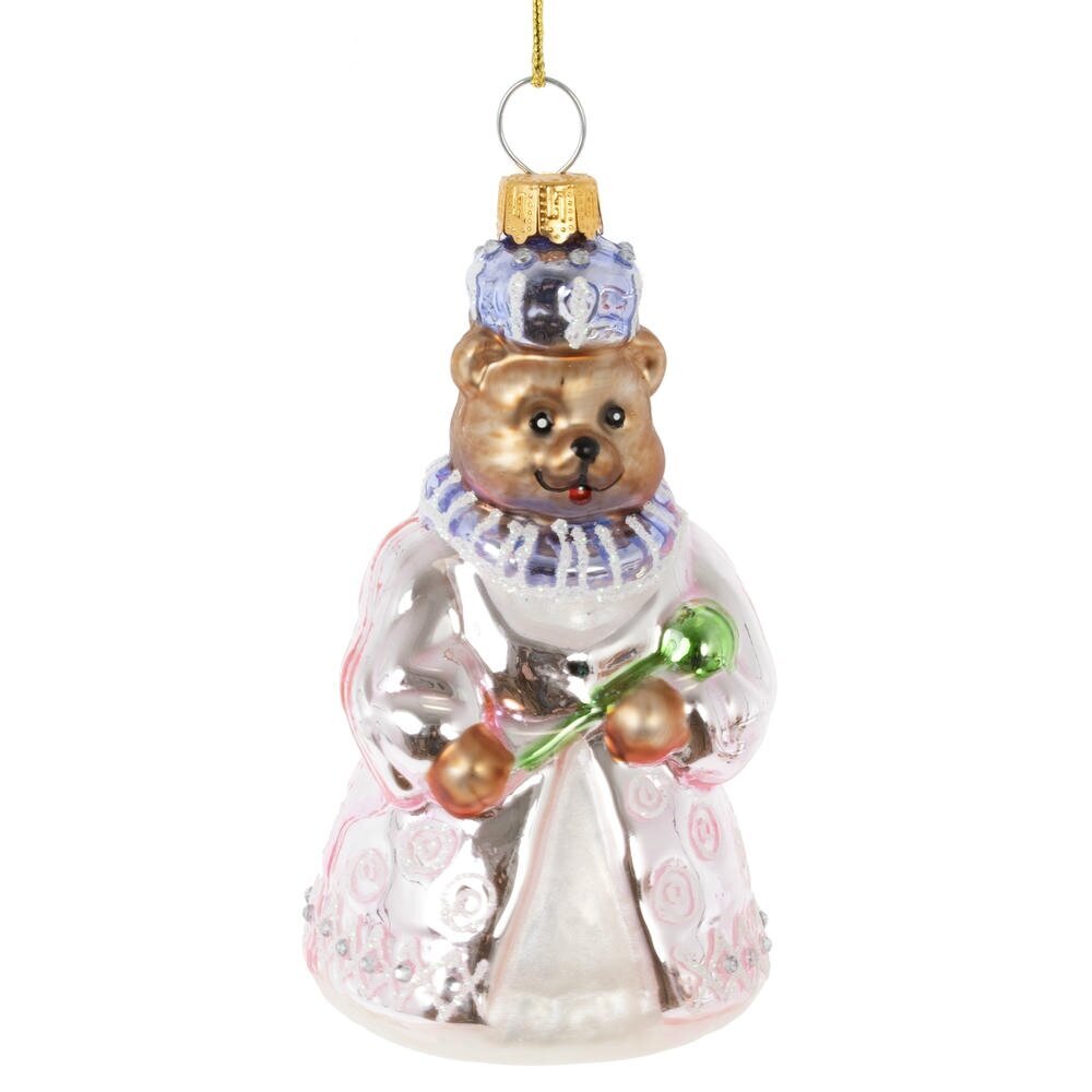 Милый медвежонок-принцесса в розовом платье и изящной короне — это утончённое новогоднее украшение из стекла, которое добавит вашей ёлке волшебства, уюта и романтики. Игрушка выполнена с особым вниманием к деталям: аккуратные черты, мерцающий декор, нежный оттенок платья и маленькая корона придают образу сказочный шарм. Лёгкий шиммер создают ощущение настоящего новогоднего чуда. Такое украшение идеально подойдёт для детской ёлки, коллекции изысканных фигурок или в качестве трогательного подарка, наполненного теплом, нежностью и праздничным волшебством.
