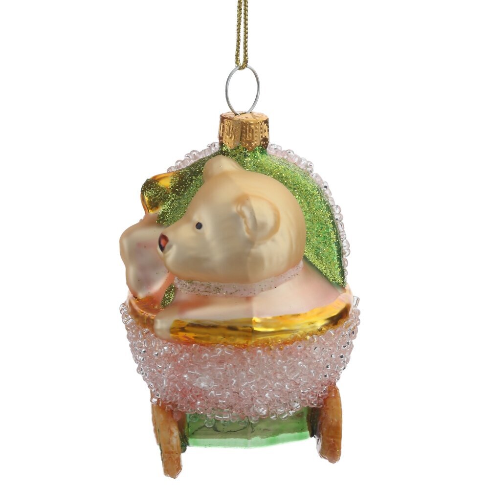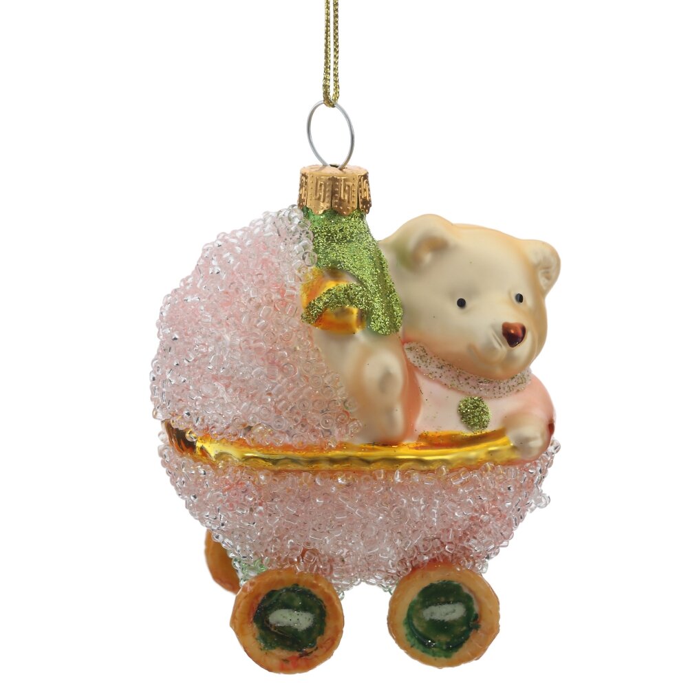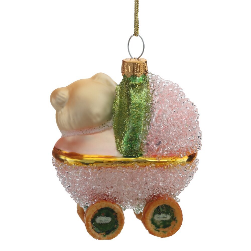 Вот она - настоящая классика елочных украшений. Стеклянная игрушка в виде Медвежонка в коляске, выполнена в традиционном стиле, дарит самое теплое ощущение настоящего новогоднего волшебства.