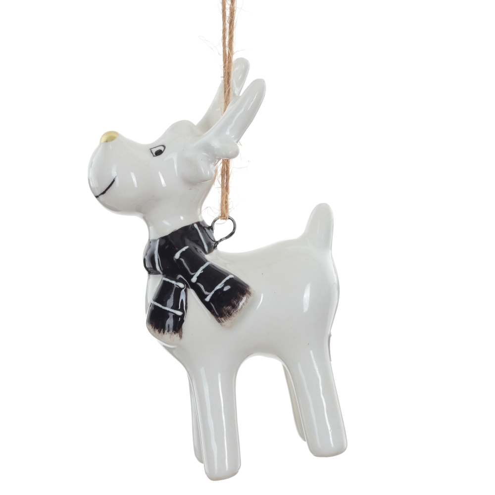 Новогодняя керамическая игрушка в виде веселого Оленя станет оригинальным дополнением наряда праздничной елочки. Расписанная в черно-белых тонах подвеска обязательно понравится ценителям необычного декора.