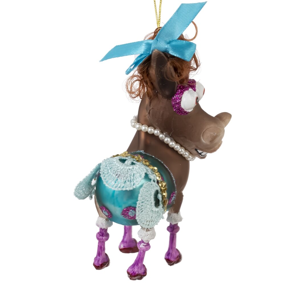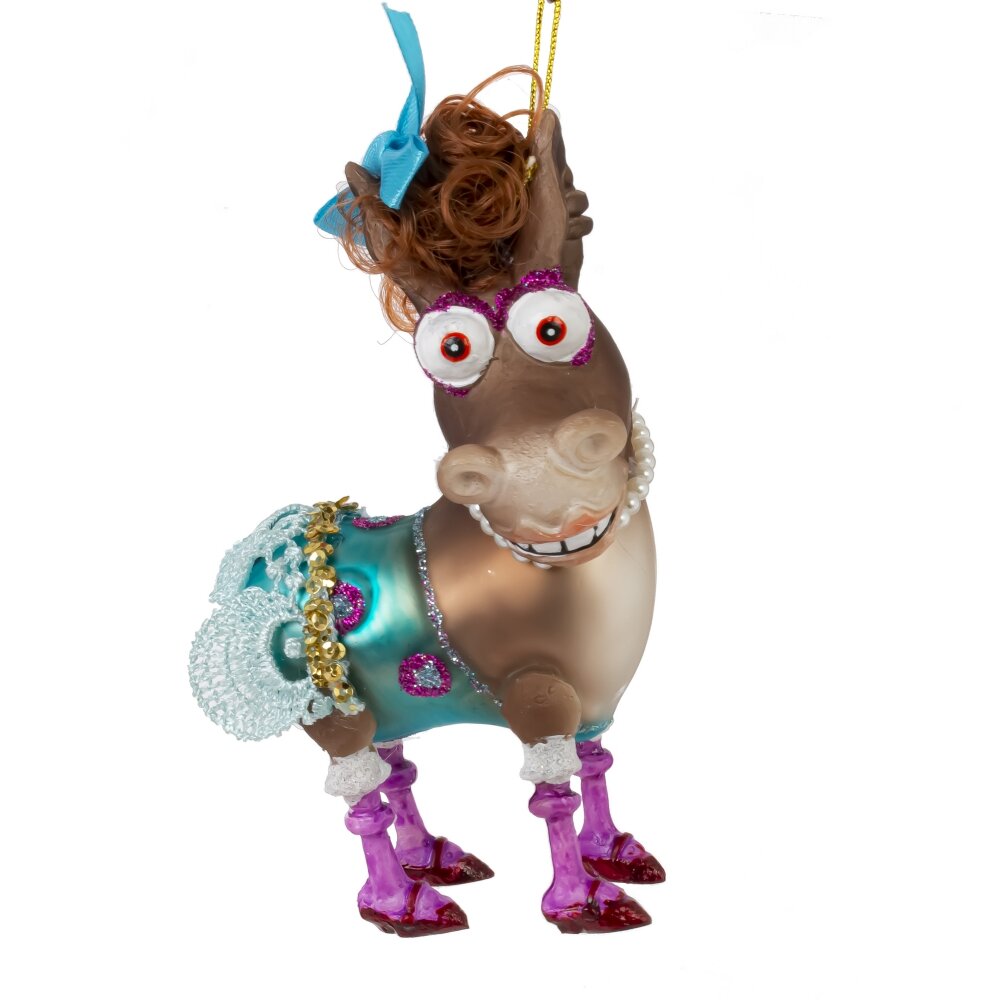 Очаровательная стеклянная фигурка ослика станет ярким акцентом вашего новогоднего декора. Она украшена блестящими элементами, придающими ей особый шарм и праздничное настроение. Фигурка оснащена подвеской, что позволяет легко разместить её на ветках ёлки или в других местах вашего интерьера. Эта фигурка станет отличным подарком для ценителей оригинального новогоднего декора и добавит уюта и волшебства в ваш дом. Добавьте ослика в коллекцию новогодних украшений и создайте неповторимую атмосферу праздника в вашем доме.
