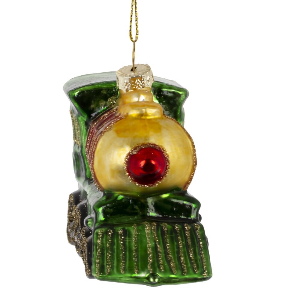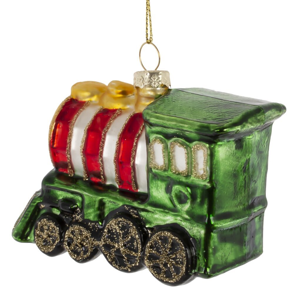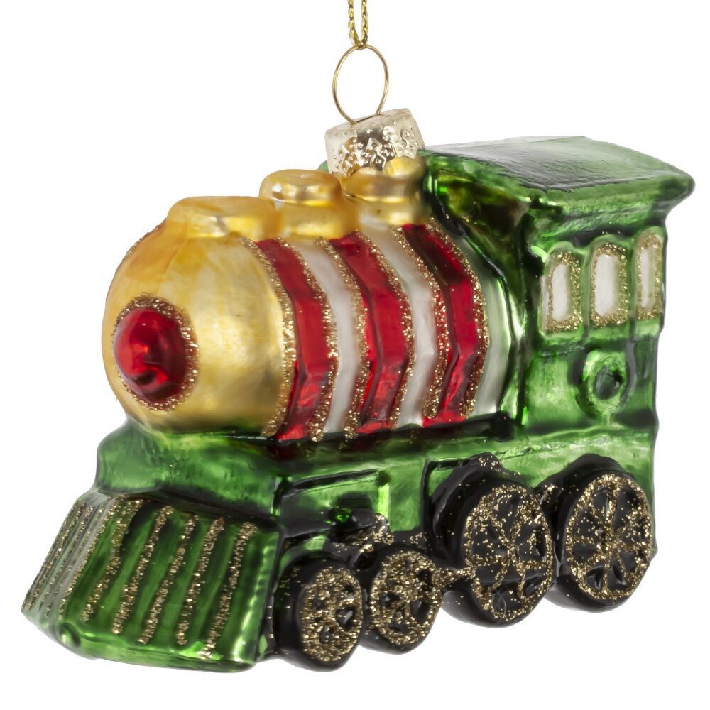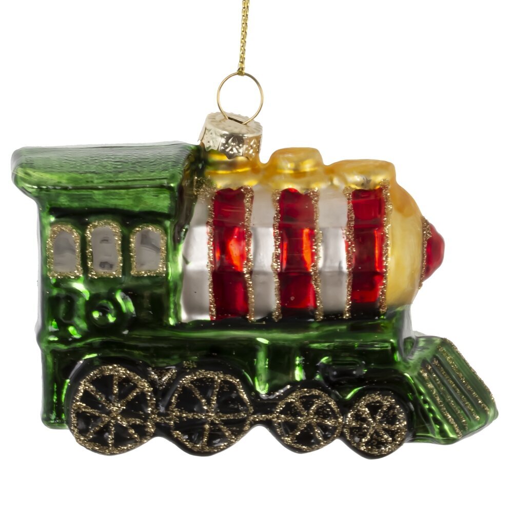 Яркое елочное украшение из стекла в виде паровоза, выполненного в традиционных новогодних цветах — красном, зелёном и золотом, — станет настоящим символом приближающегося чуда. Фигурка украшена мерцающим шиммером и выполнена с любовью к деталям: блестящие колёса, дымовая труба, декоративные элементы и праздничный блеск создают ощущение сказочного путешествия в зимнюю ночь. Такой паровоз словно мчится по снежным просторам, везя радость, подарки и волшебство. Это украшение добавит уюта, тепла и классической праздничной атмосферы на вашу ёлку. Идеальный вариант как для домашнего декора, так и в качестве душевного подарка.