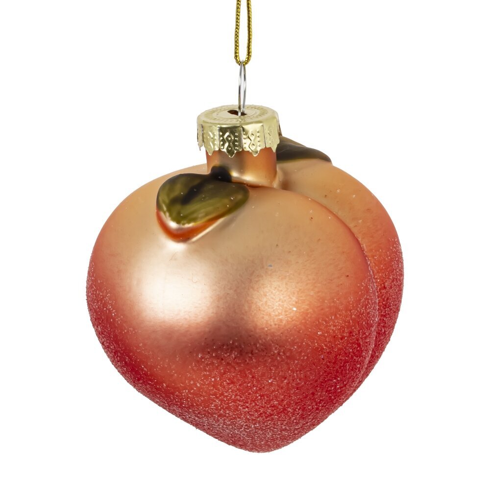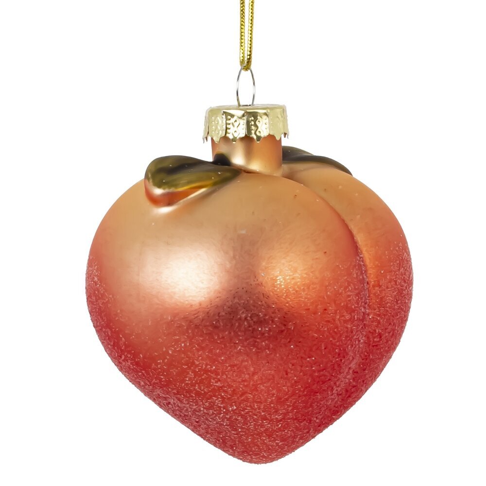 Нежное и необычное елочное украшение из стекла в виде сочного персика — это стильный акцент, который добавит вашему новогоднему декору свежести, уюта и изящества. Игрушка выполнена с реалистичной проработкой формы и текстуры, а бархатистая поверхность и мягкие переходы оттенков делают её особенно привлекательной. Персик символизирует тепло, благополучие и домашний уют — именно то, что хочется сохранить в новом году. Мерцающий шиммер придаёт фрукту лёгкое сияние, особенно красиво смотрящееся в свете гирлянд. Такое украшение станет оригинальным элементом на ёлке и необычным подарком с душой.