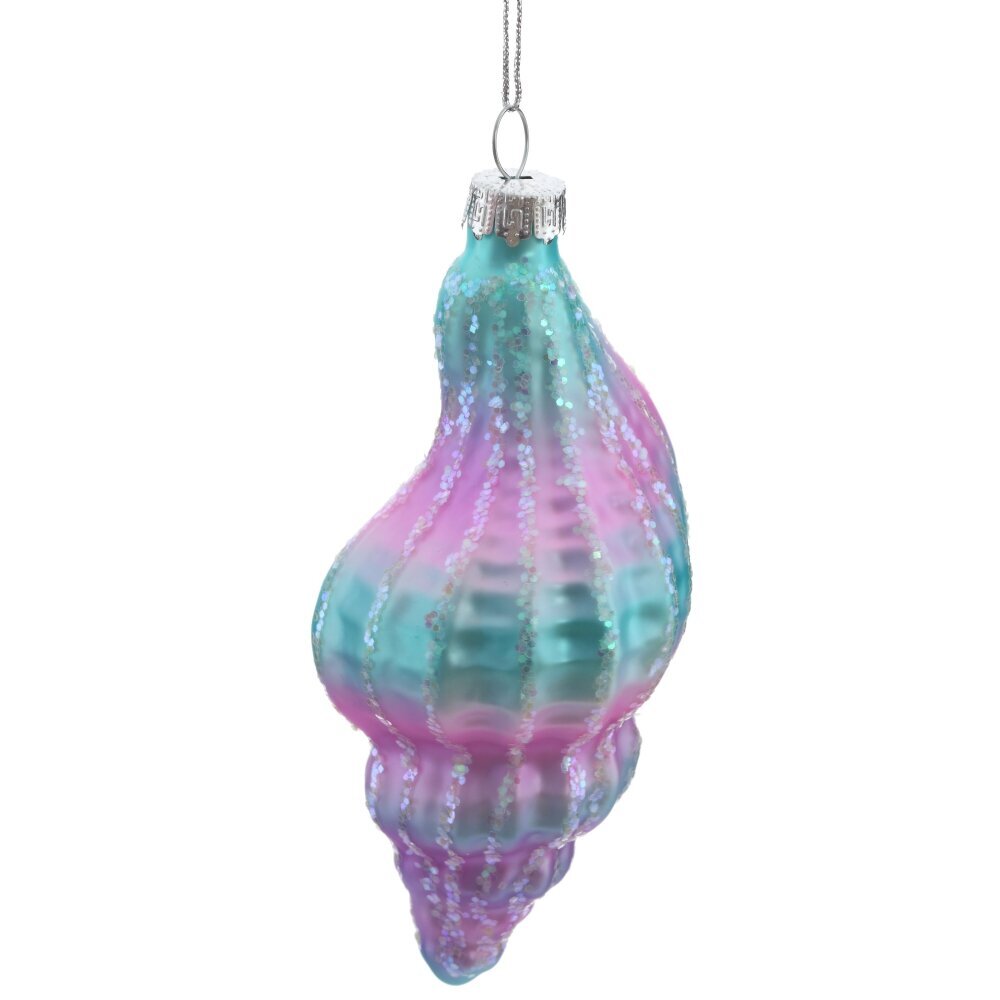 Украшение новогоднее "Ракушка" - прекрасное дополнение к новогодней коллекции стеклянных игрушек. Сочетание розового и бирюзового цветов, а также блестки, придающие эффект сияния, делают эту ракушку уникальной и изысканной. Она принесет частичку морского мира в ваш дом и создаст волшебную атмосферу праздника.