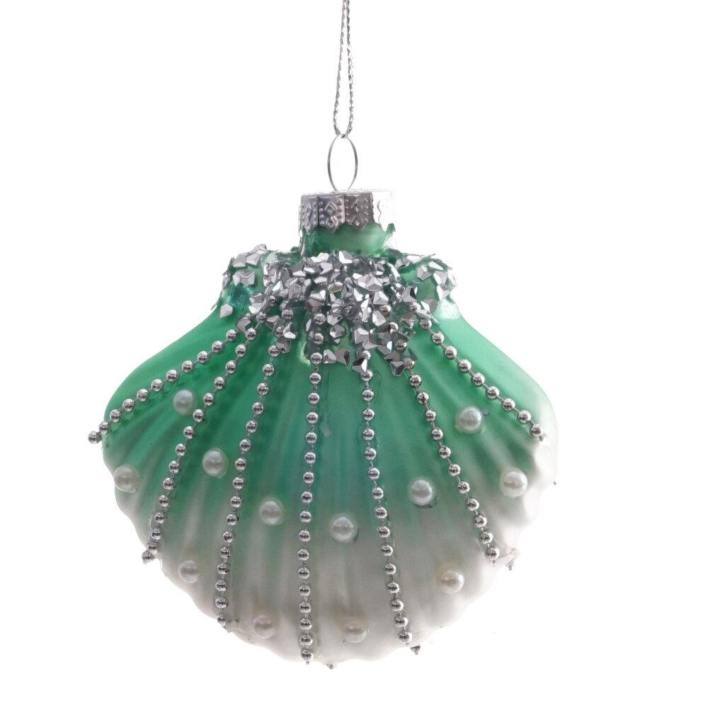 Эта удивительная стеклянная раковина - идеальное новогоднее украшение. Ее благородный зеленый оттенок и жемчужный бисер создают образ изысканности и красоты, который непременно привлечет внимание на вашей елке. Она идеально впишется в праздничный декор, создавая настроение отпуска. Подарите себе частичку морского волшебства с этим прекрасным украшением!